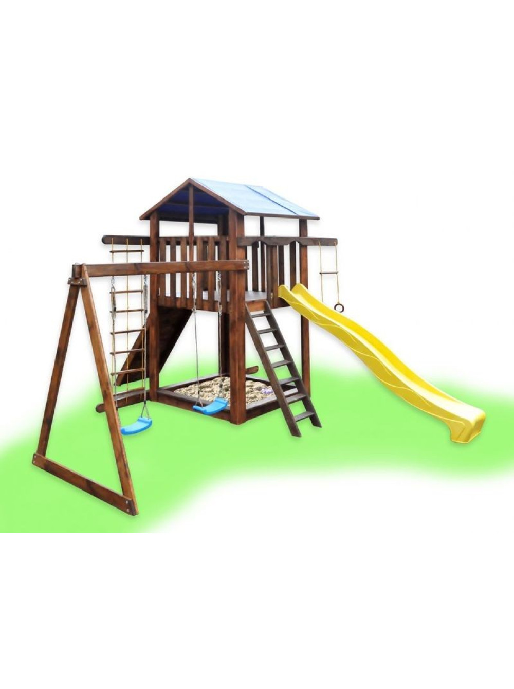 Цей ігровий комплекс для вулиці з багатофункціональним наповненням, допоможе Вам облаштувати повноцінну зону для ігор і проведення дозвілля Ваших дітей. Дитячий майданчик дерев'яний для вулиці Іграйка №2 раціонально об'єднує кілька рівнів для занять: ігровий будиночок, гойдалки, гірка, пісочниця.