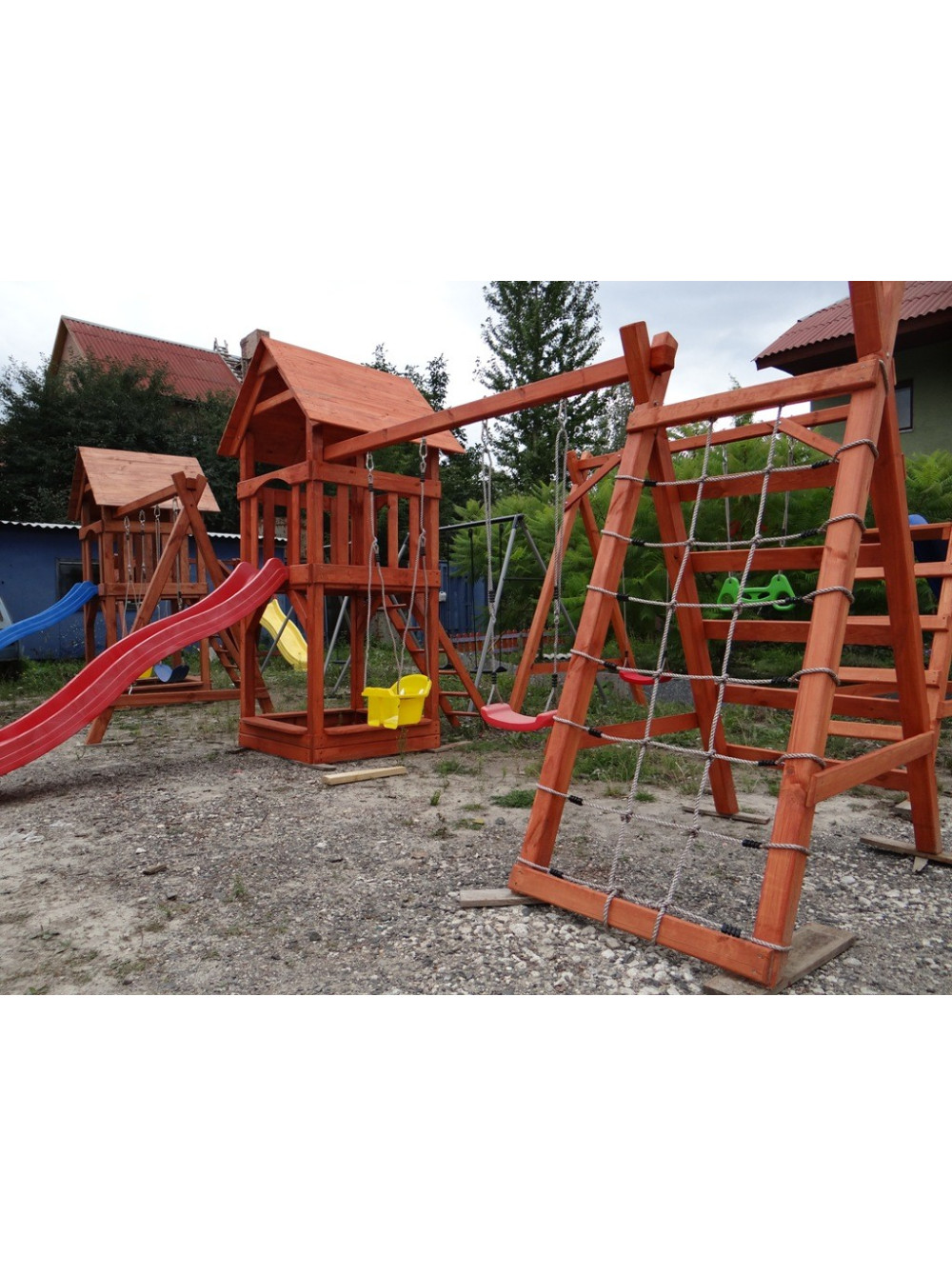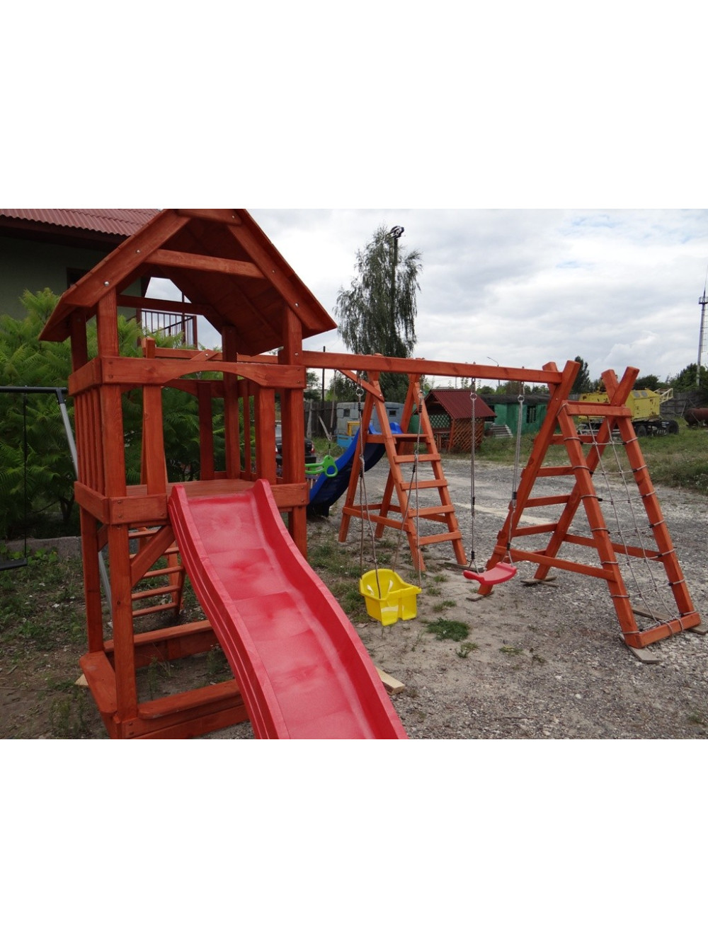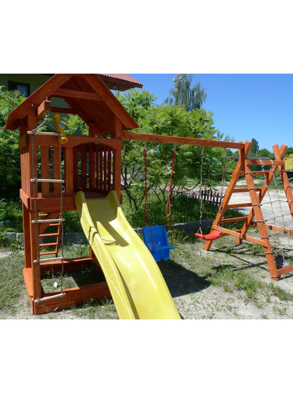 Увага! Комплектацію замовник зможе вибрати самостійно. Замість пісочниці комплекс можна обладнати столом з лавками і сходи можуть бути з іншими компонентами, наприклад з зачіпками для скелелазіння.