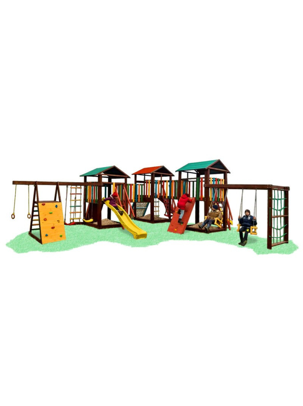 - Дитячий майданчик - натуральна деревина сосни, пофарбована в колір "Венге" з кольоровими вставками