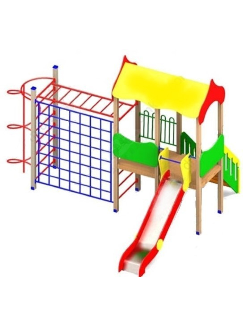 Опори , що несуть конструкцію і основні елементи в цьому комплексі виконані з металу, також є присутніми елементи з вологостійкої фанери.