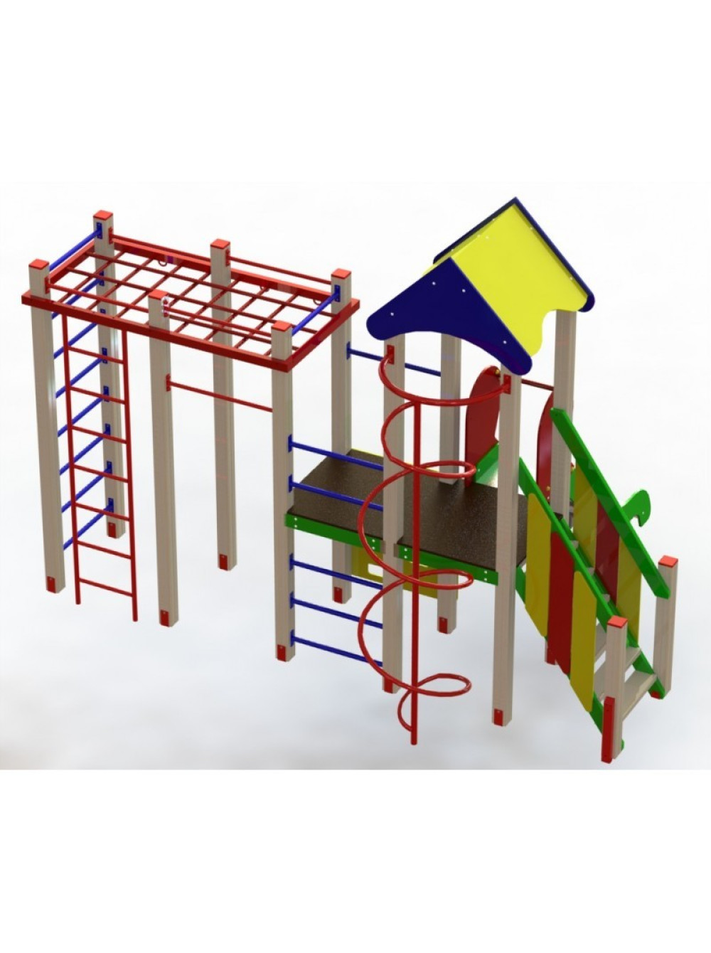Набір різноманітних спортивних елементів не залишить байдужим жодну дитину і заняття на ньому сподобаються як старшим так і молодшим, адже цей майданчик тим і унікальний, що деякі гімнастичні тренажери розраховані на різновікових дітей.