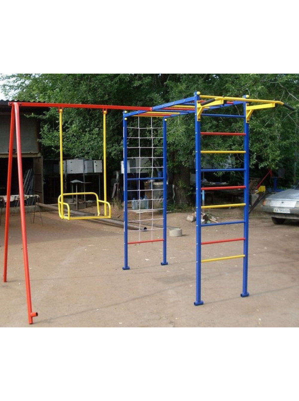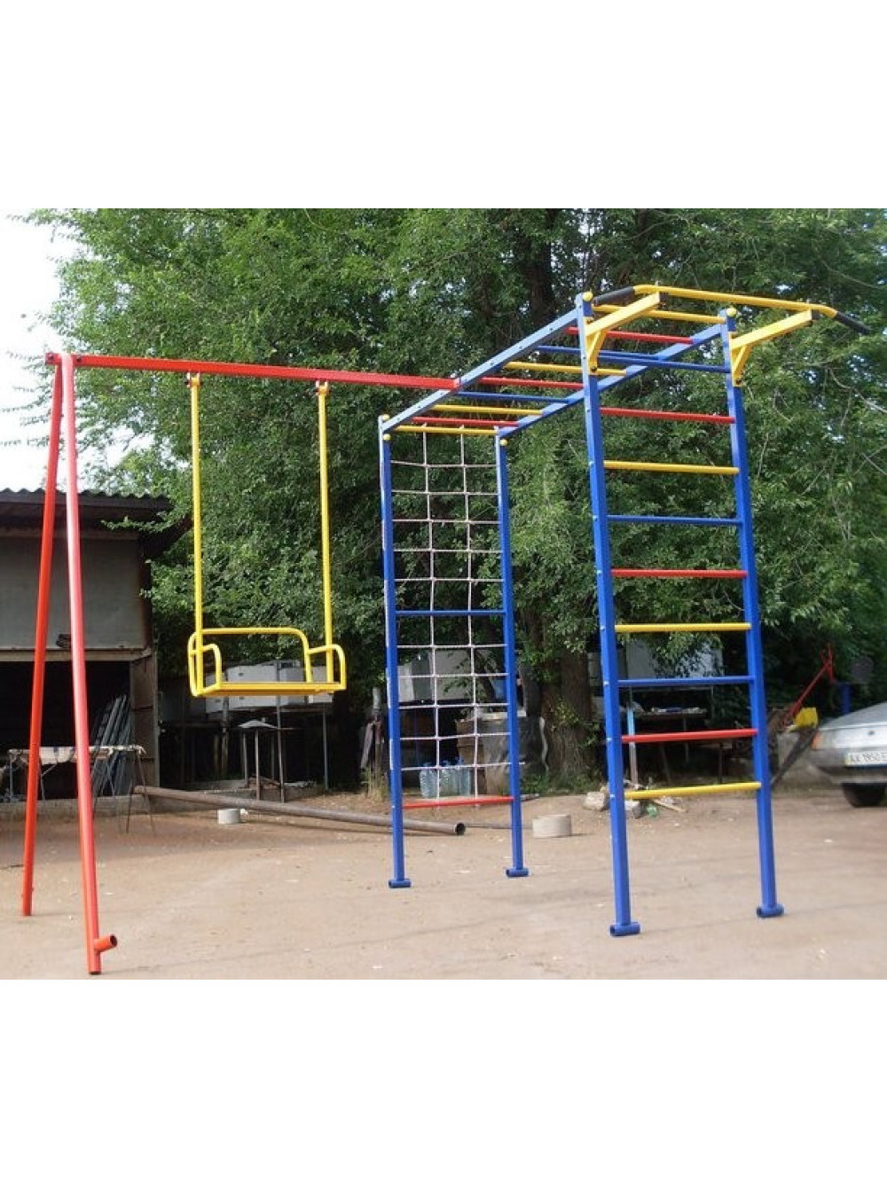 Дитячий спортивно-ігровий комплекс з гойдалками Da-812 - міцна металева конструкція, в якій дуже вдало поєднуються розважальні та гімнастичні елементи. Ідеально підходить не тільки для розвитку м'язів, але і вестибулярного апарату, який, як відомо, відповідає за правильну орієнтацію в просторі. Складається з найпопулярніших компонентів - шведської стінки, сітки для лазіння, рукохіду, турніка і гойдалки на жорсткому зчепленні.