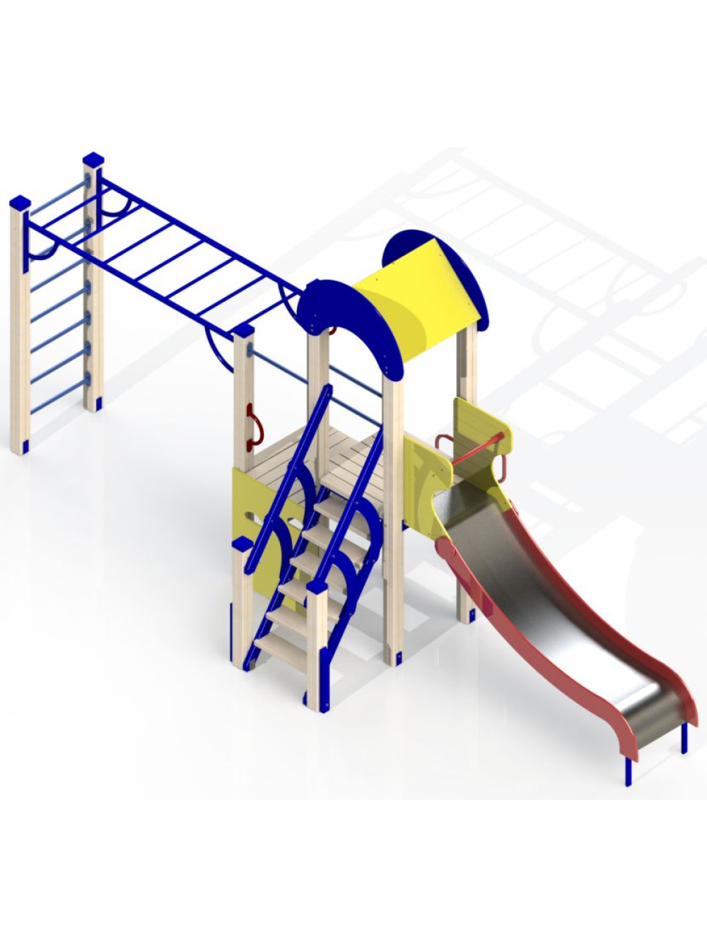 Ігровий майданчик "Базовий-2" - відмінне, базове рішення для організації ігрової зони на вулиці. Розрахована на користування дітьми до семи років.
