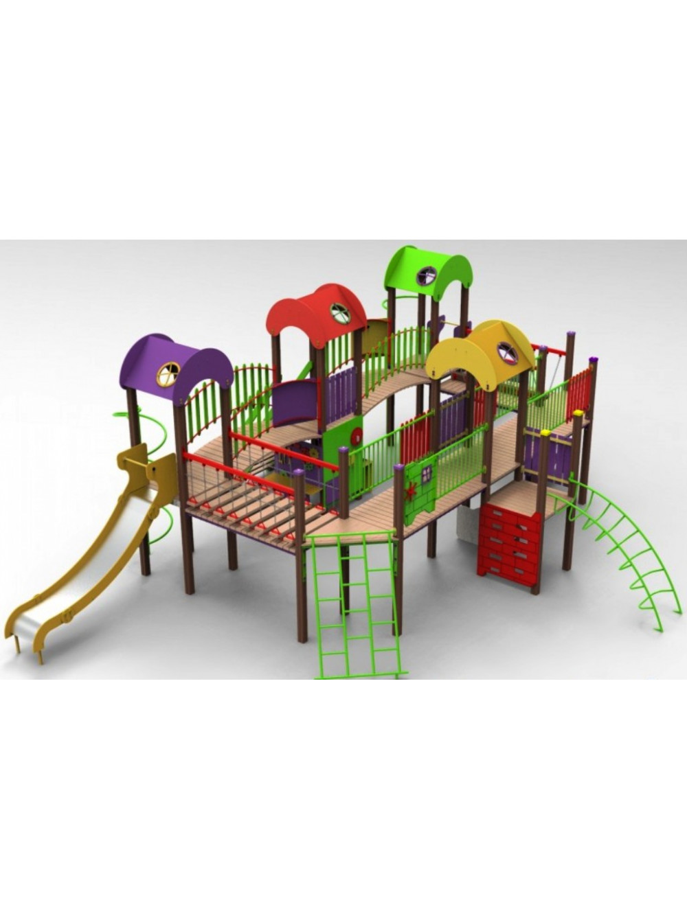 Яскравий і великий майданчик з многочисленними підйомами, дві гірки і п'ять містків.