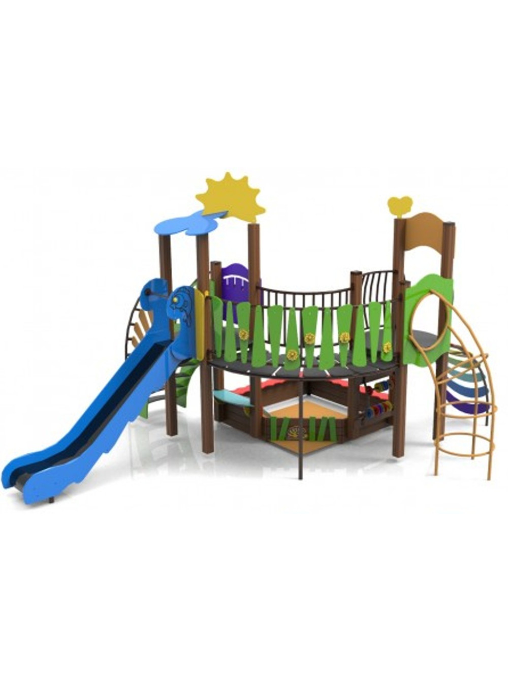 Зручна драбинка, пісочниця, гірка і все це в кольорах веселки - гарантують цікаве дозвілля малюків.