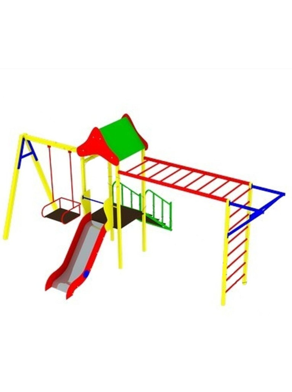 І це рішення дуже правильне, тому, що граючи, непомітно для себе й без усякого примусу з боку дорослих, дітвора поступово буде освоювати світ спортивних занять. До того ж на такому комплексі одночасно зможуть перебувати різновікові діти від трьох до десяти років та кожен знайде розвагу за своїм бажанням і можливостям. Зовсім маленьким будуть цікаві гойдалка та гірка, а старші діти зможуть позмагатися один з одним у спритності та силі.