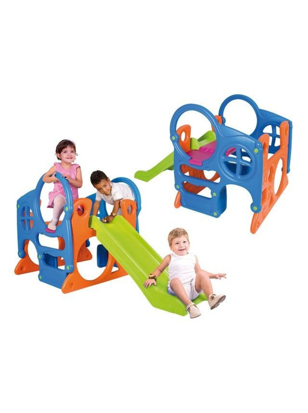 Незважаючи на свої невеликі розміри, майданчик досить функціональний і візуально його можна розділити на дві зони: будиночок і гірка. Піднятися на гірку можна по двох незвичайних бокових драбинках з пластмасовими кільцями-поручнями нагорі. Конструкція будиночка - дворівнева, з безліччю лазів і віконець різної форми, на яких можна лазити як всередині, так і зовні комплексу.