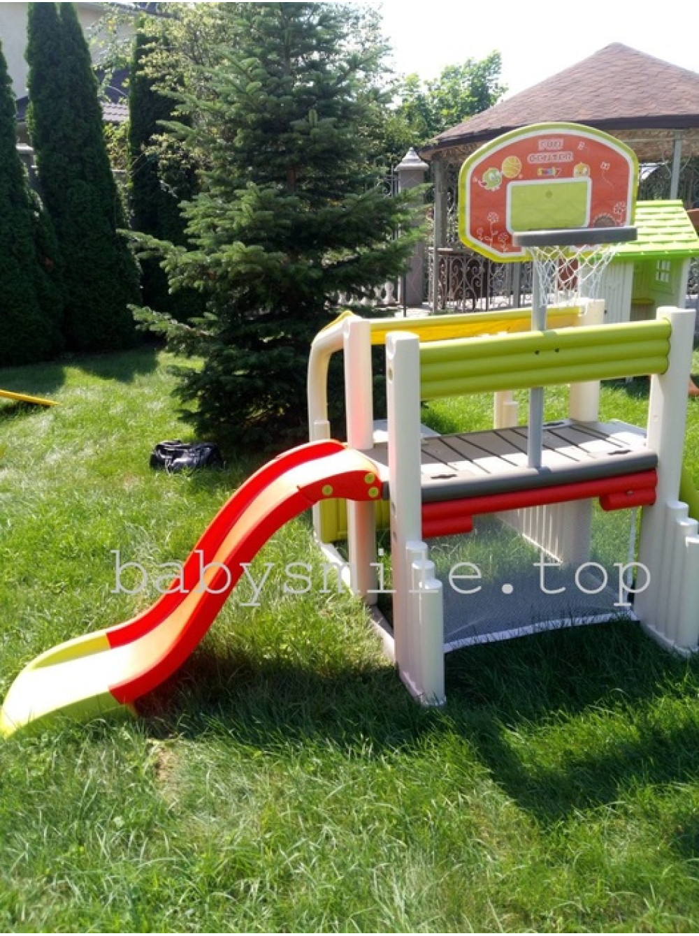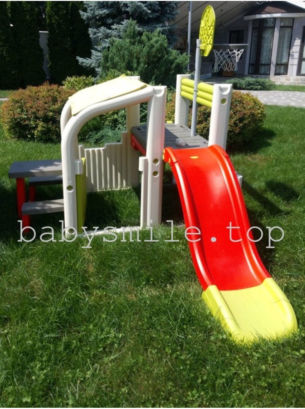 Цей комплекс має середні розміри, його можна розмістити як у будинку так і на вулиці, легко збирається (у комплекті є інструкція). Виготовлений з міцного пластика, не вигорає на сонці, зносостійкий, гігієнічний (його можна помити). Радуватиме Вас і Ваших діток багато років.