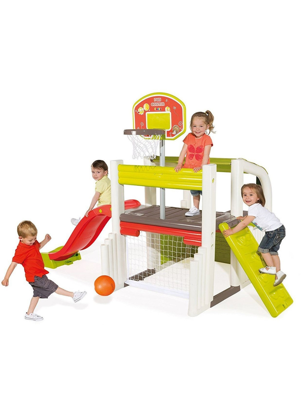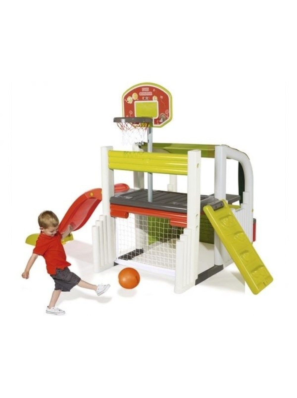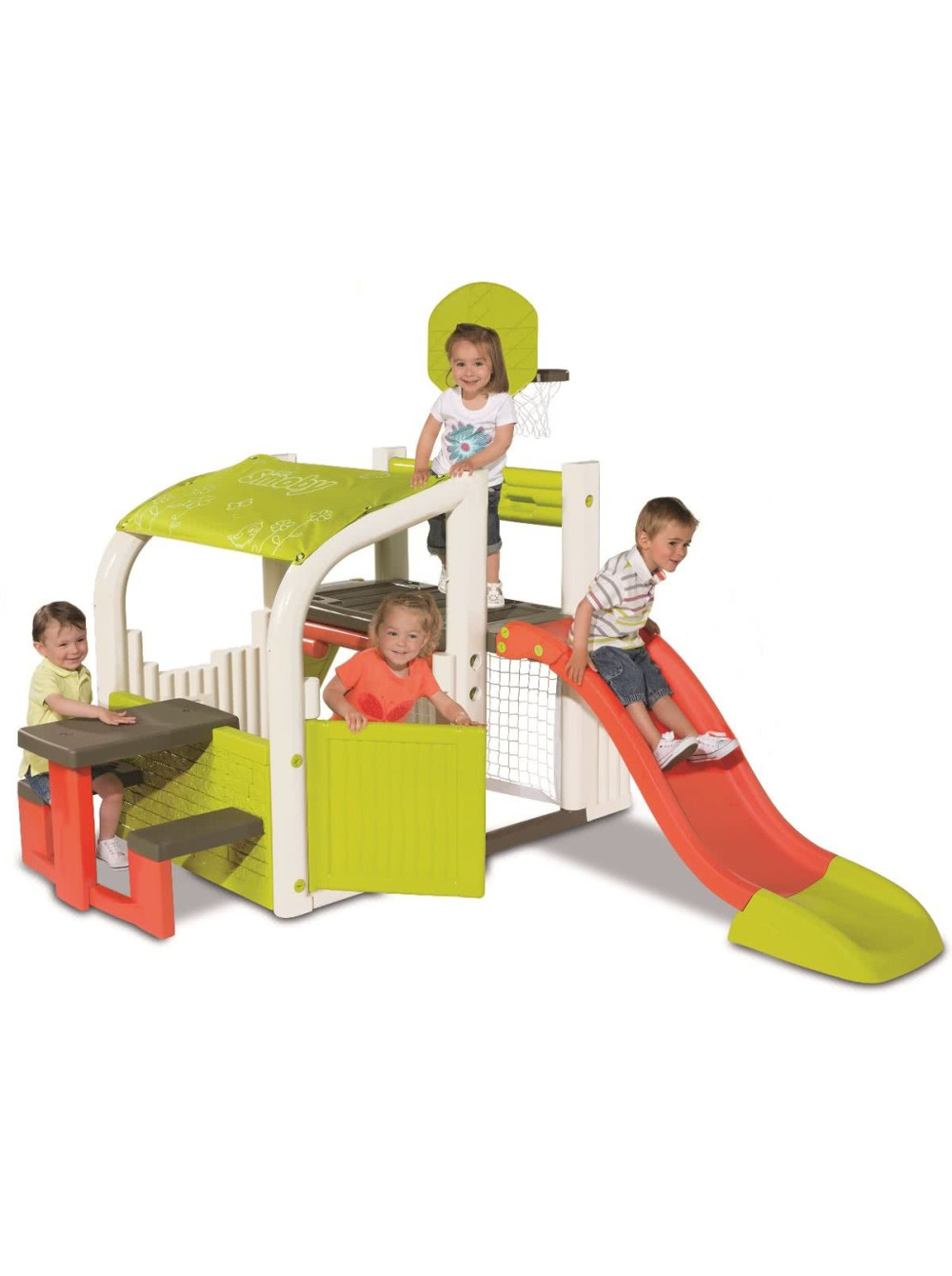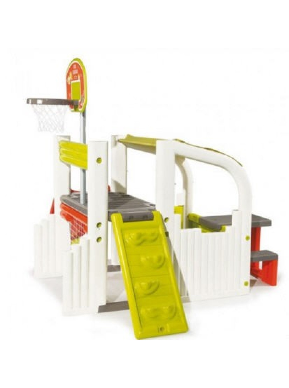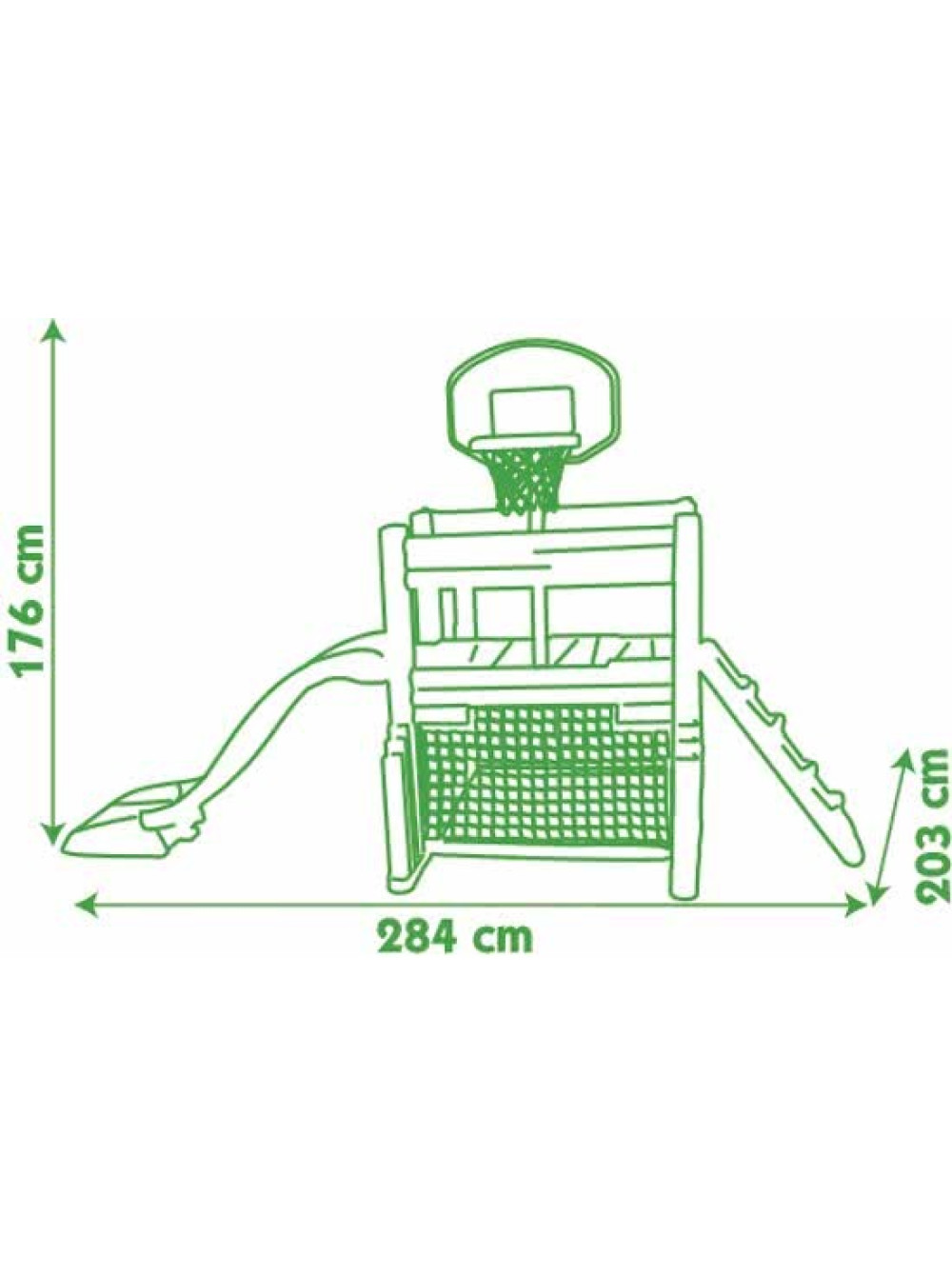 Ігровий центр Захоплюючі забави - це супер майданчик і ігри на ньому радуватимуть дітлахів тривалий час. Така іграшка просто не може набриднути, тому що в ній передбачені декілька ігрових напрямів: для спортивних зайнять (баскетбольне кільце, сітка для лазіння, футбольні ворота), для розваг (гірка, скалолазка, затишна кімната). А коли після ігор і веселощів діточкам захочеться відпочити або перекусити вони зможуть скористатися столом з лавками.
