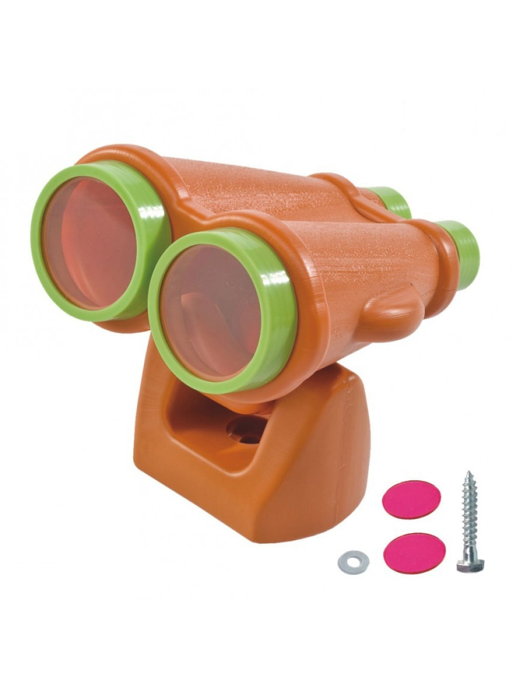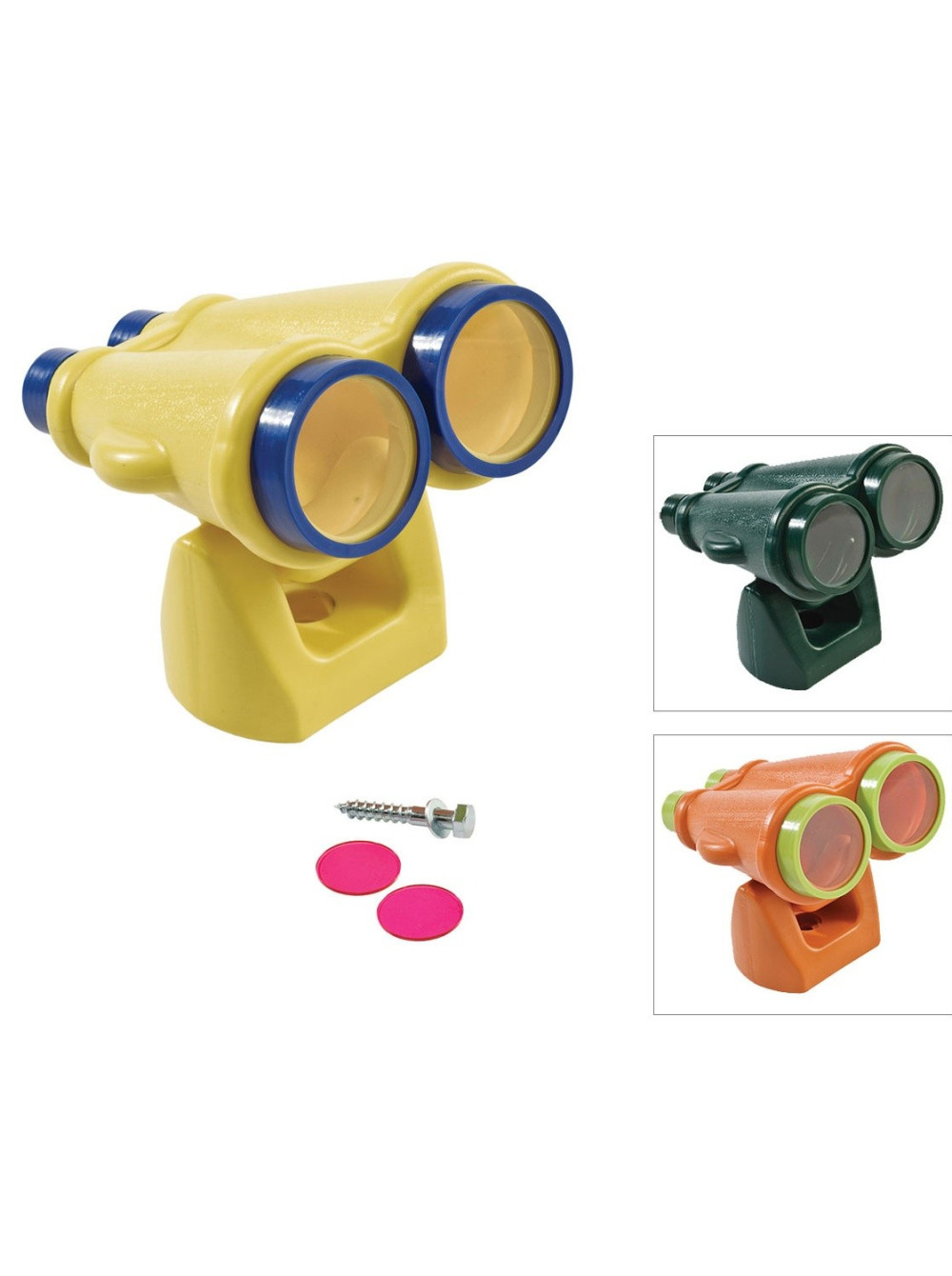 Бінокль для дитячих майданчиків ігровий міні, вдале доповнення до усіх вуличних майданчиків, його так само можна використати і самостійно. Бінокль кріпитися до будь-якої перекладини, дерева або щита. Він обертається на всі боки, зроблений з цілісного пластика, не збільшує.
