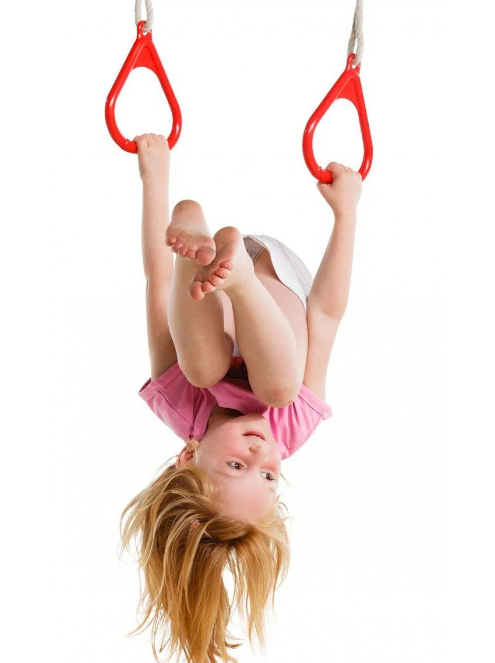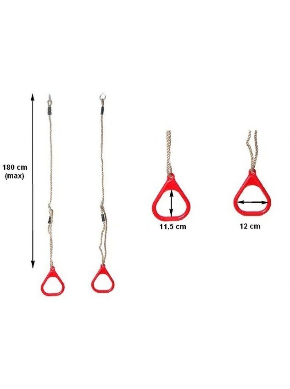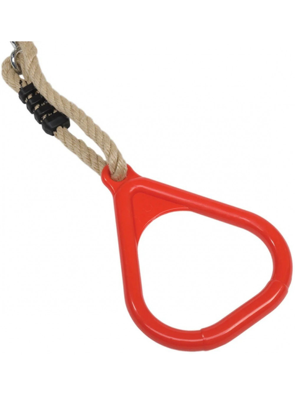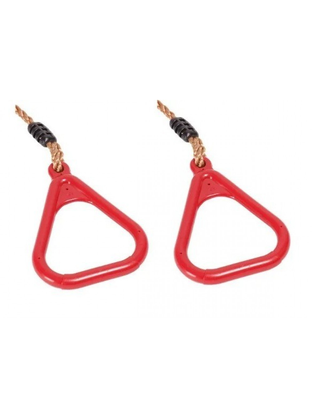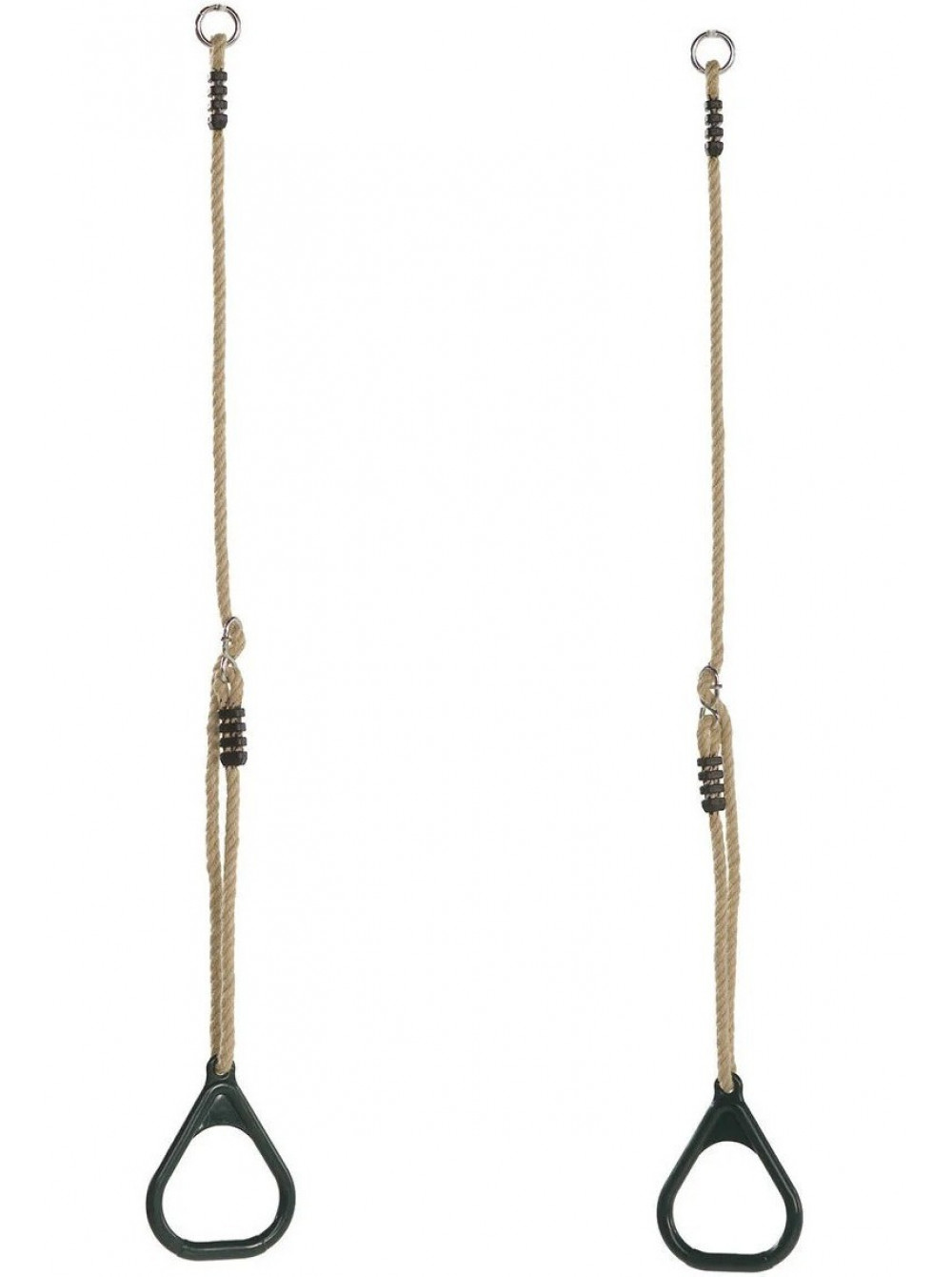 Кільця гімнастичні для дитячих майданчиків - пластикові, трикутної форми на вірьовках. Відмінний аксесуар для будь-якого ігрового комплексу, їх можна використати як на вулиці, так і в приміщенні. У комплекті кільця і вісімки, виготовлені з оцинкованої сталі.