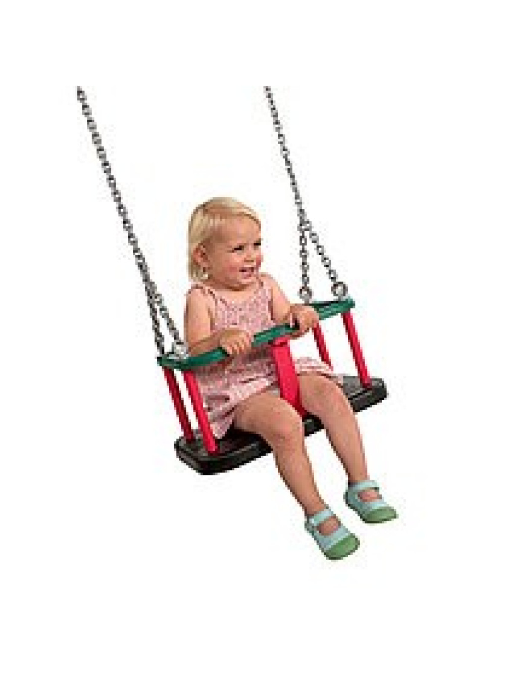 Сидіння для гойдалки прогумоване на ланцюгах підійде для дітей від 1-го року. Ця модель сидіння є гумовим сидінням з металевою вставкою, яке в першу чергу призначене використовувати на вулиці. Разом з сидінням йдуть в комплекті ланцюги.