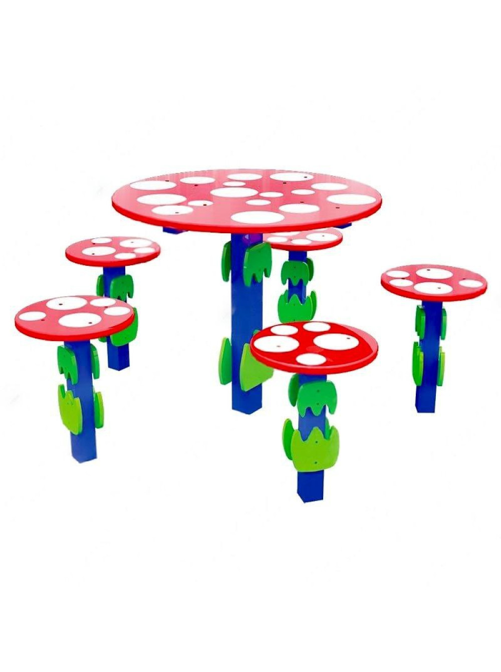 Дитячий столик вуличний з сидіннями Мухомори - необхідний елемент кожного дитячого майданчика.