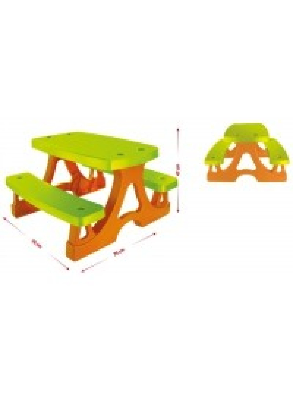 Дитячий стіл з лавками Пікнік гарне рішення для розміщення дітей на майданчику, літній веранді або в саду. За столиком одночасно можуть сидіти до шести хлоп'ят, підходить для спільних занять, малювання, ліплення з пластиліну і навіть для спільного обіду.