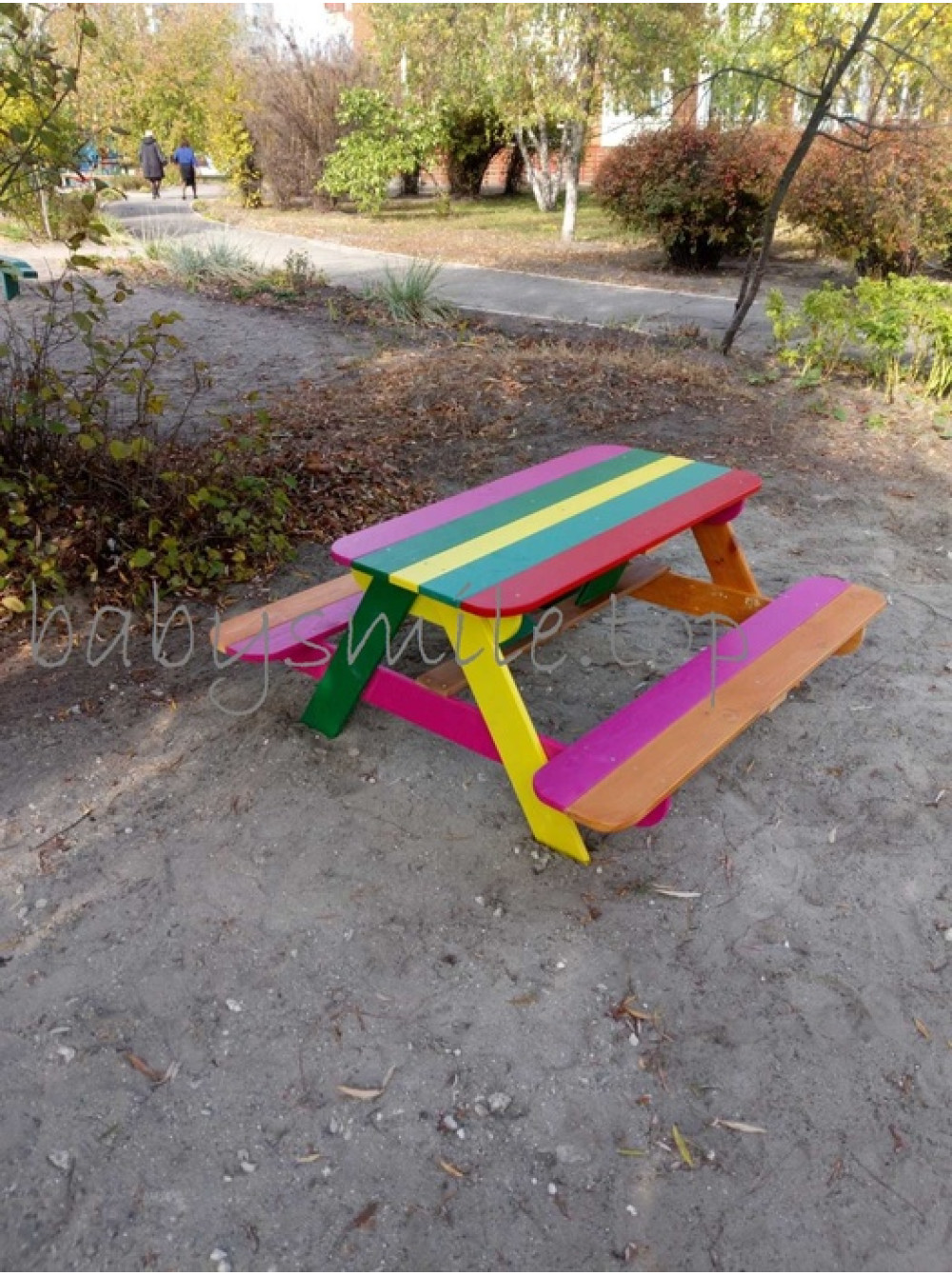 Дитячий столик з лавками для дитячого майданчика яскравий і кольоровий не раз виручить Вас в літню пору. Так як стане дуже комфортним і улюбленим місцем проведення денного дозвілля у Вашої дітвори. Ці меблі зроблені з урахуванням усіх фізіологічних потреб і можливостей спеціально для дітей.