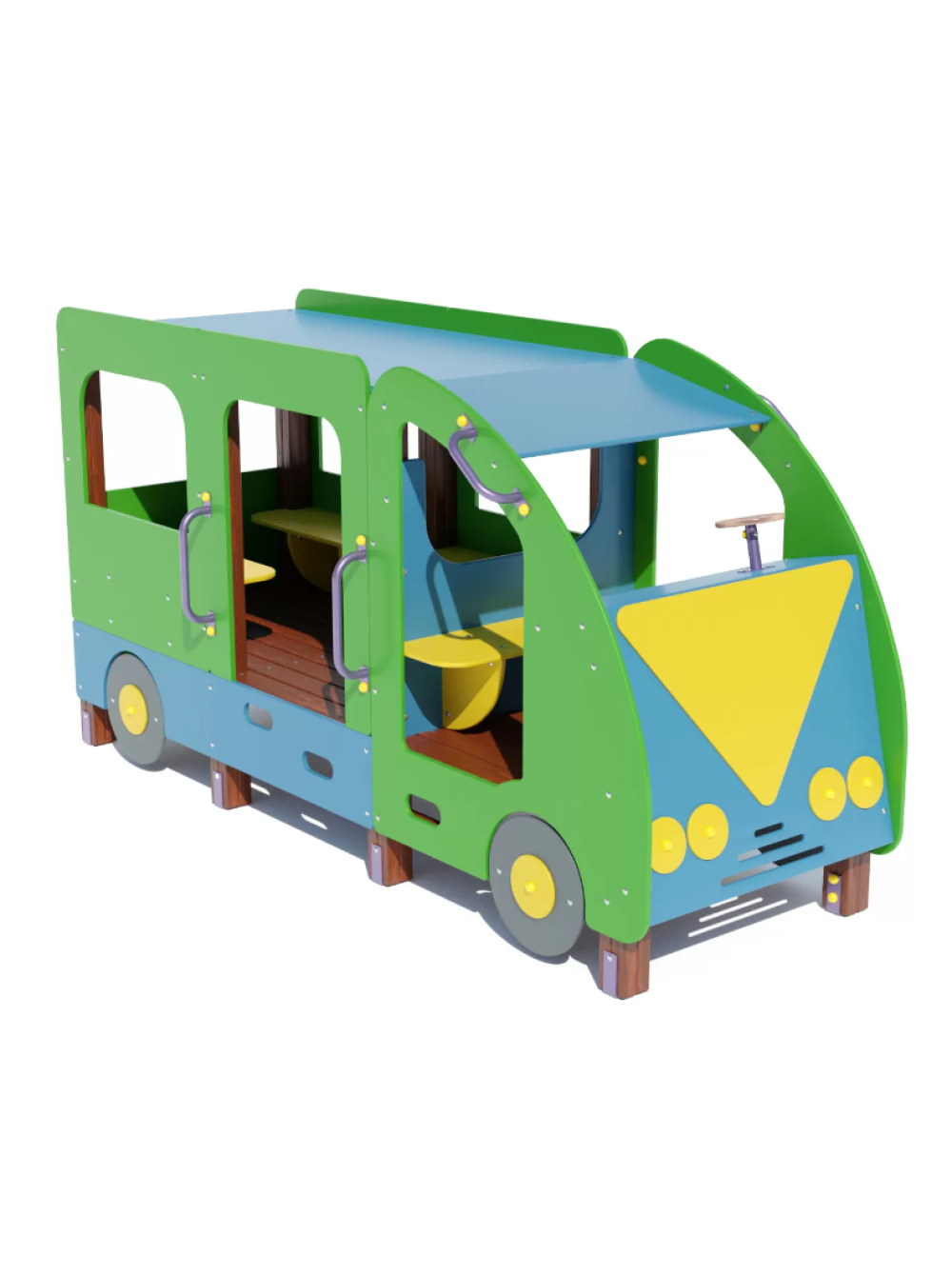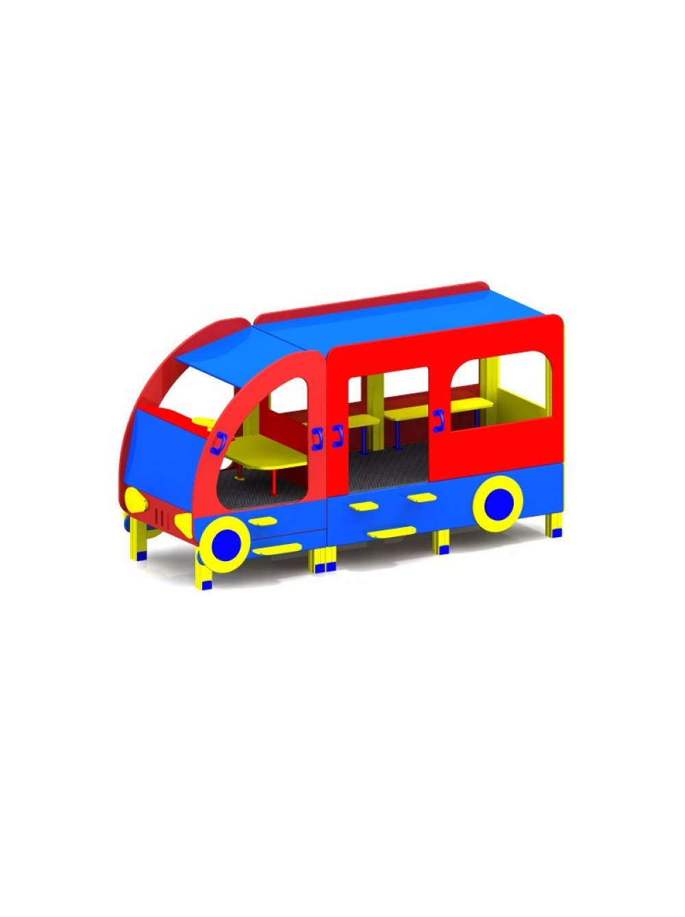 Майданчик дитячий Автобус - нестандартне і дуже популярне рішення для організації комплексу розваг для дітлахів як в громадському місці так і на приватній території. Такі предмети для ігрового дозвілля розвивають мислення, психомоторику, а головне - вчать спілкуванню з однолітками.