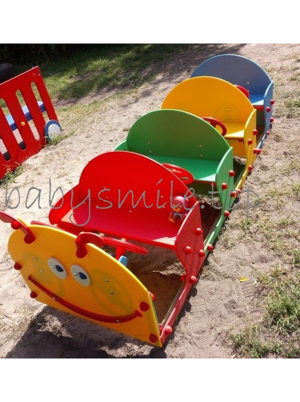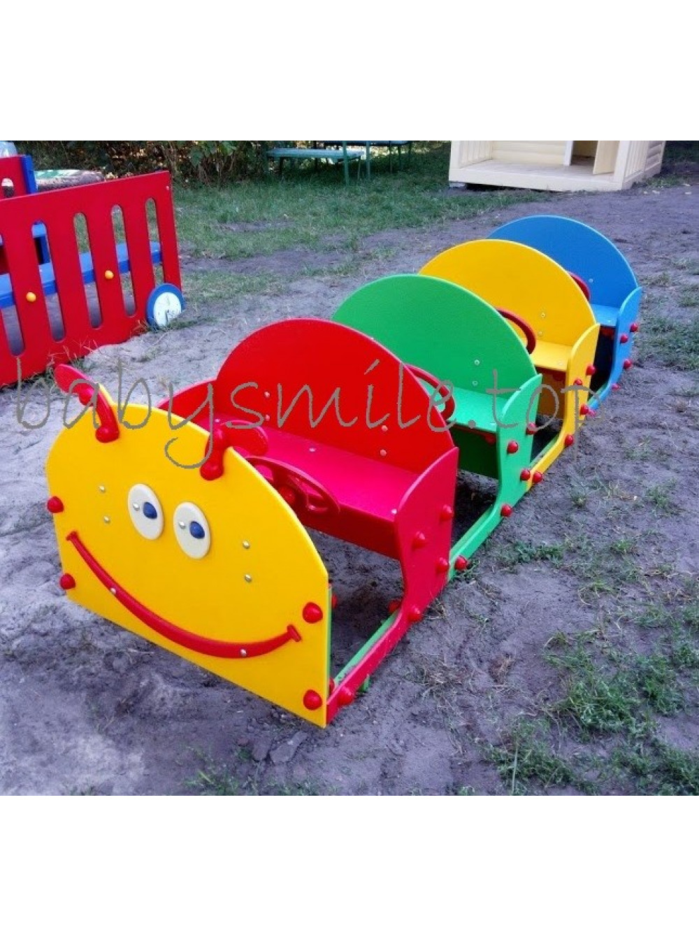 Машинка для дитячого майданчика Гусеничка - простий, без надмірностей, але разом з тим чудовий і дуже практичний варіант для укомплектування дитячого майданчика таким ігровим елементом.