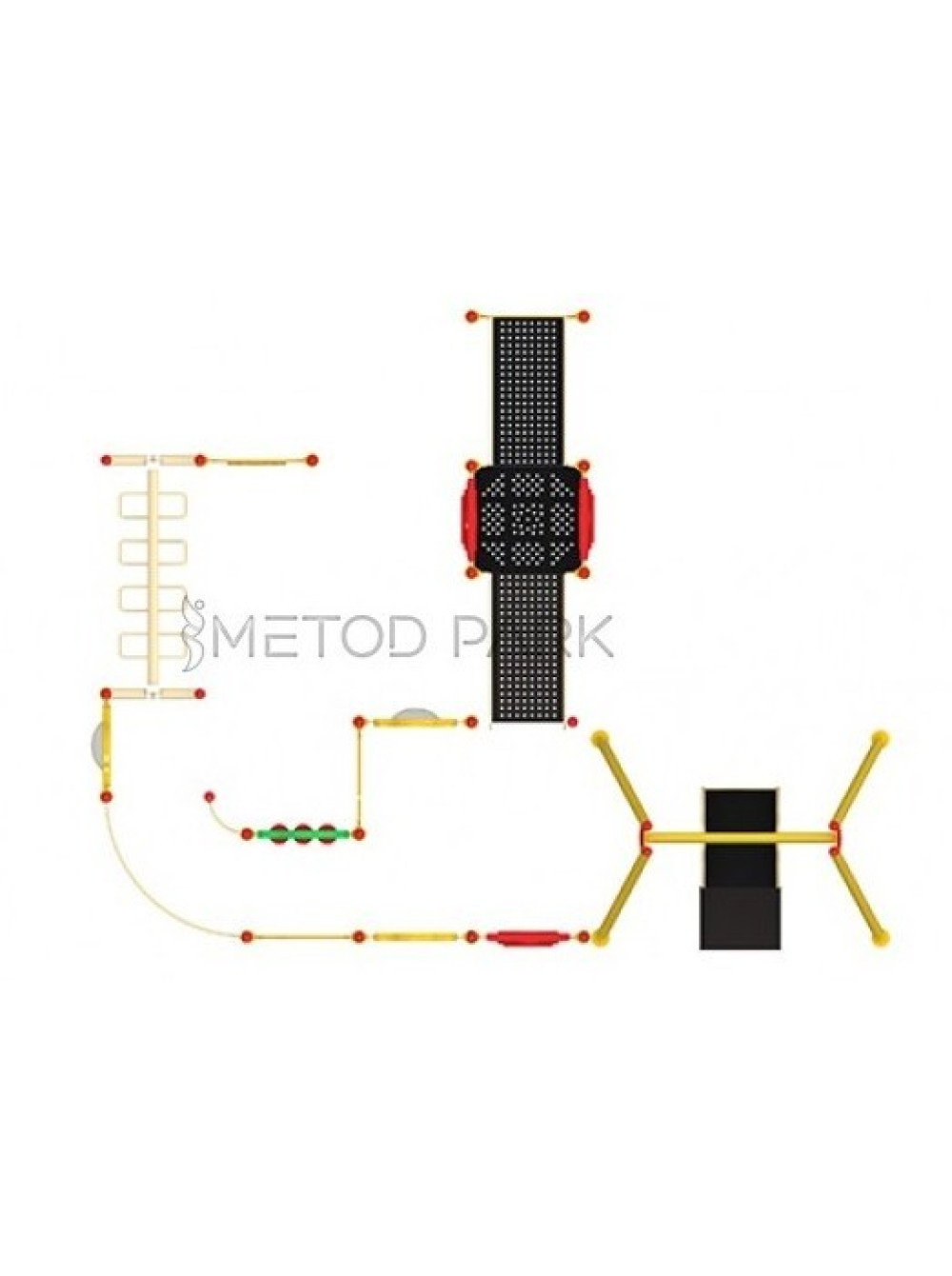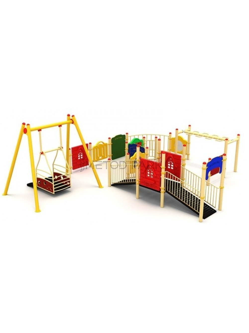 Ігровий комплекс виконаний з металу. Електростатична порошкова фарба наноситься на металеві деталі шляхом піскоструминної обробки, оцинкування, полірування ґрунтовки або катафорезу. Поліетиленові деталі виготовлені з антистатичного матеріалу, нешкідливого для здоров'я.