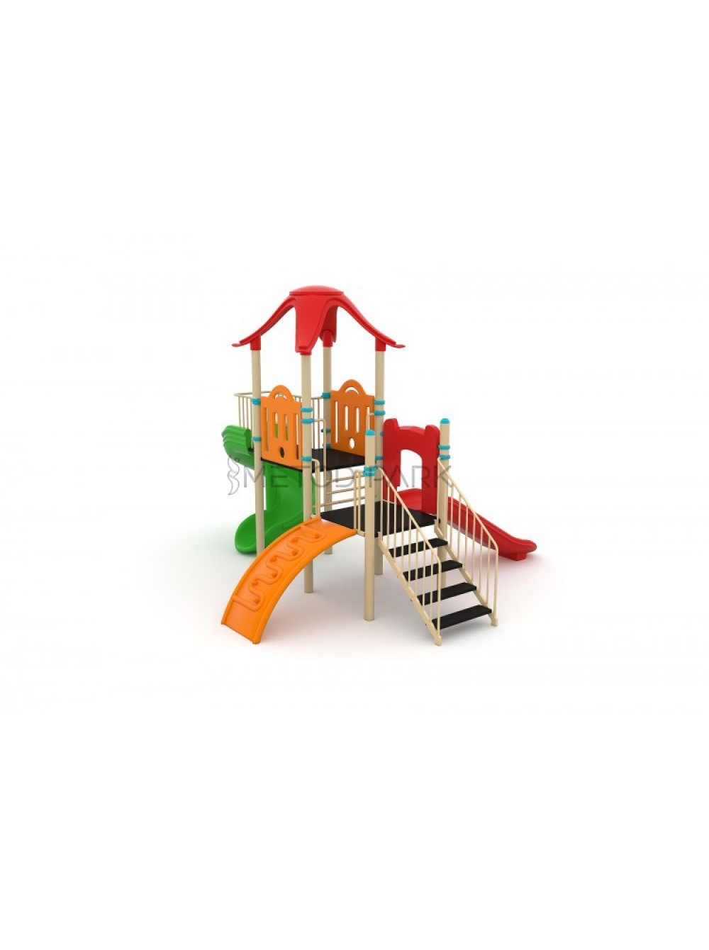 Майданчик Метод Парк Класик-1 - класичний дворівневий ігровий комплекс з двома гірками: стандартною прямою ти гвинтовий. Таким чином тут зможуть гратися діти різного віку і кожен знайде собі заняття по душі.