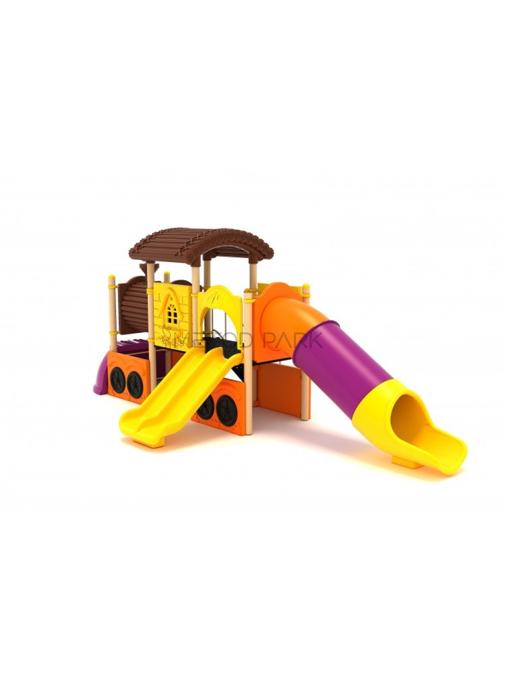 Майданчик Паровозик Метод парк - тематичний ігровий комплекс у вигляді забавного паровоза з вагоном, вийти з якого можна з'їхавши на одній з двох цікавих гірок.