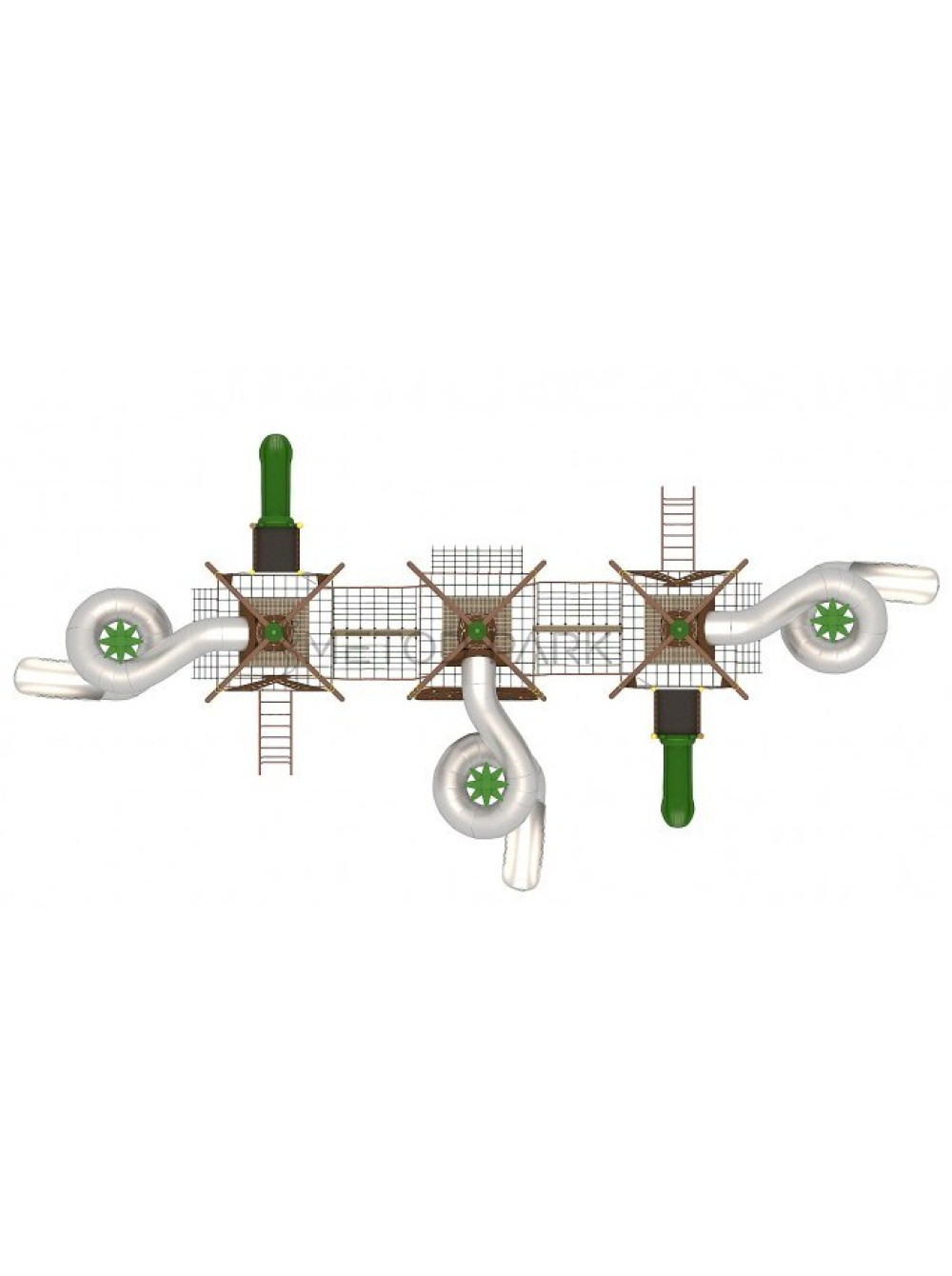 Ігровий комплекс виконаний з металу. Електростатична порошкова фарба наноситься на металеві деталі шляхом піскоструминної обробки, оцинкування, полірування ґрунтовки або катафорезу. Поліетиленові деталі виготовлені з антистатичного матеріалу, нешкідливого для здоров'я.