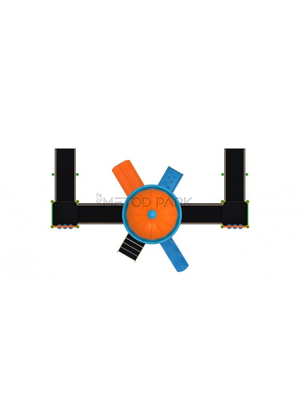 Ігровий комплекс виконаний з металу. Електростатична порошкова фарба наноситься на металеві деталі шляхом піскоструминної обробки, оцинковування, поліровки грунтовки або катафореза. Поліетиленові деталі виготовлені з антистатичного матеріалу, нешкідливого для здоров'я.