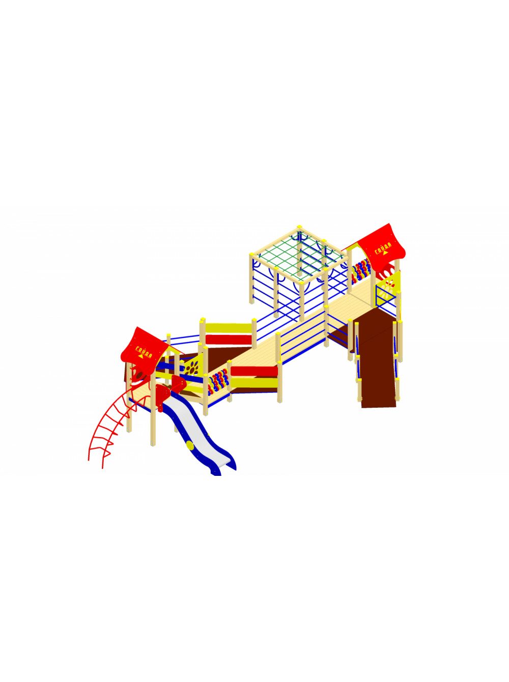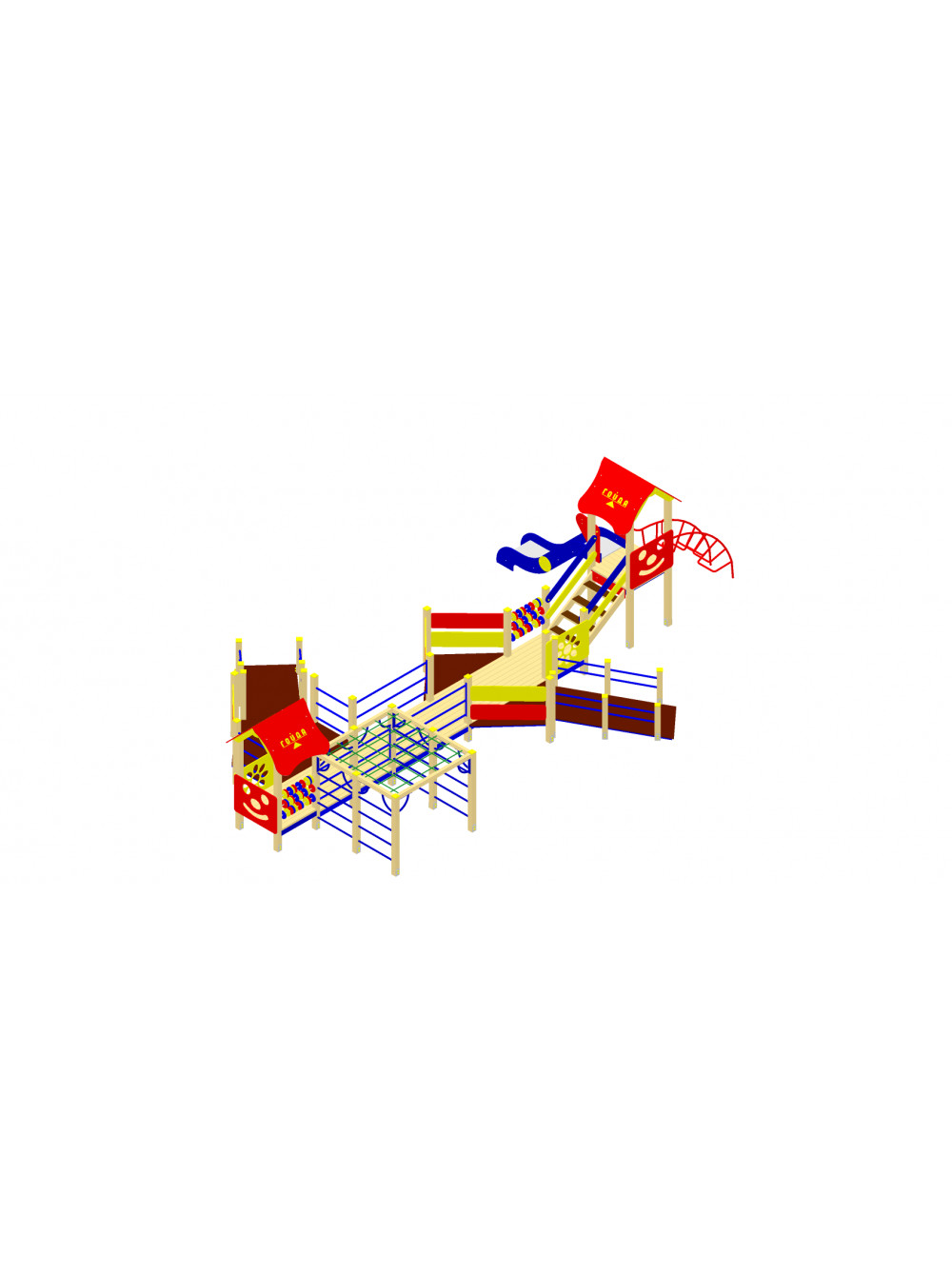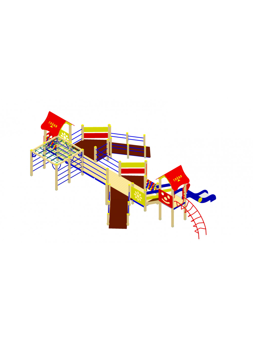 - Платформа ігрового майданчика виготовлена з соснових дощок, з'єднаних між собою за допомогою фанерного каркаса. Пофарбована фарбами стійкими до різних атмосферних явищ.