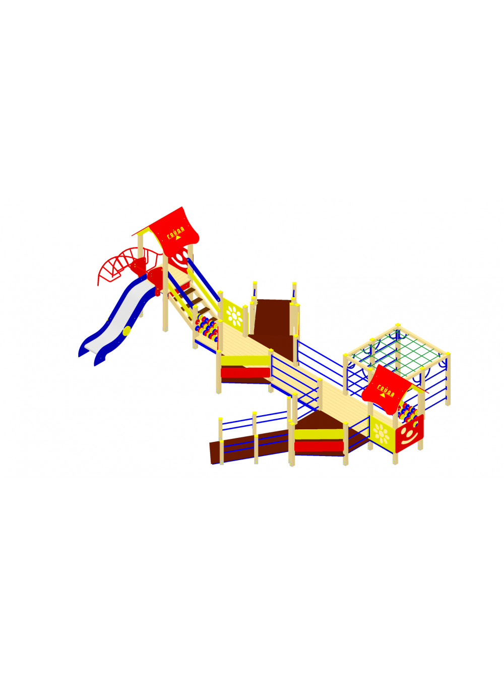 Ігровий майданчик для дітей з обмеженими можливостями - різноманітний, функціональний і зручний ігровий комплекс, розроблений спеціально для спільного користування всіх дітей, в тому числі і для діток з особливими фізичними можливостями. Підійде для різновікової дітвори, для зовсім маленьких - ігрові будиночки з елементами для розвитку у вигляді кольорових рахівниць і гірка, а ті, хто доросліший, зможуть скористатися спортивним куточком з драбинами і рукоходом, а також гіркою-ліаною.