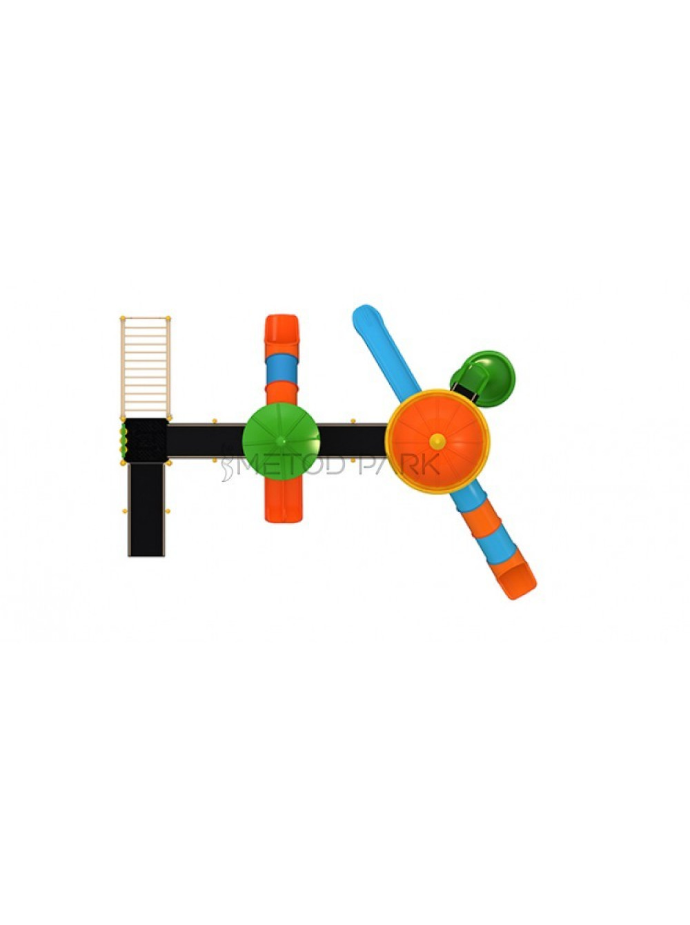 Ігровий комплекс виконаний з металу. Електростатична порошкова фарба наноситься на металеві деталі шляхом піскоструминної обробки, оцинкування, полірування ґрунтовки або катафорезу. Поліетиленові деталі виготовлені з антистатичного матеріалу, нешкідливого для здоров'я.