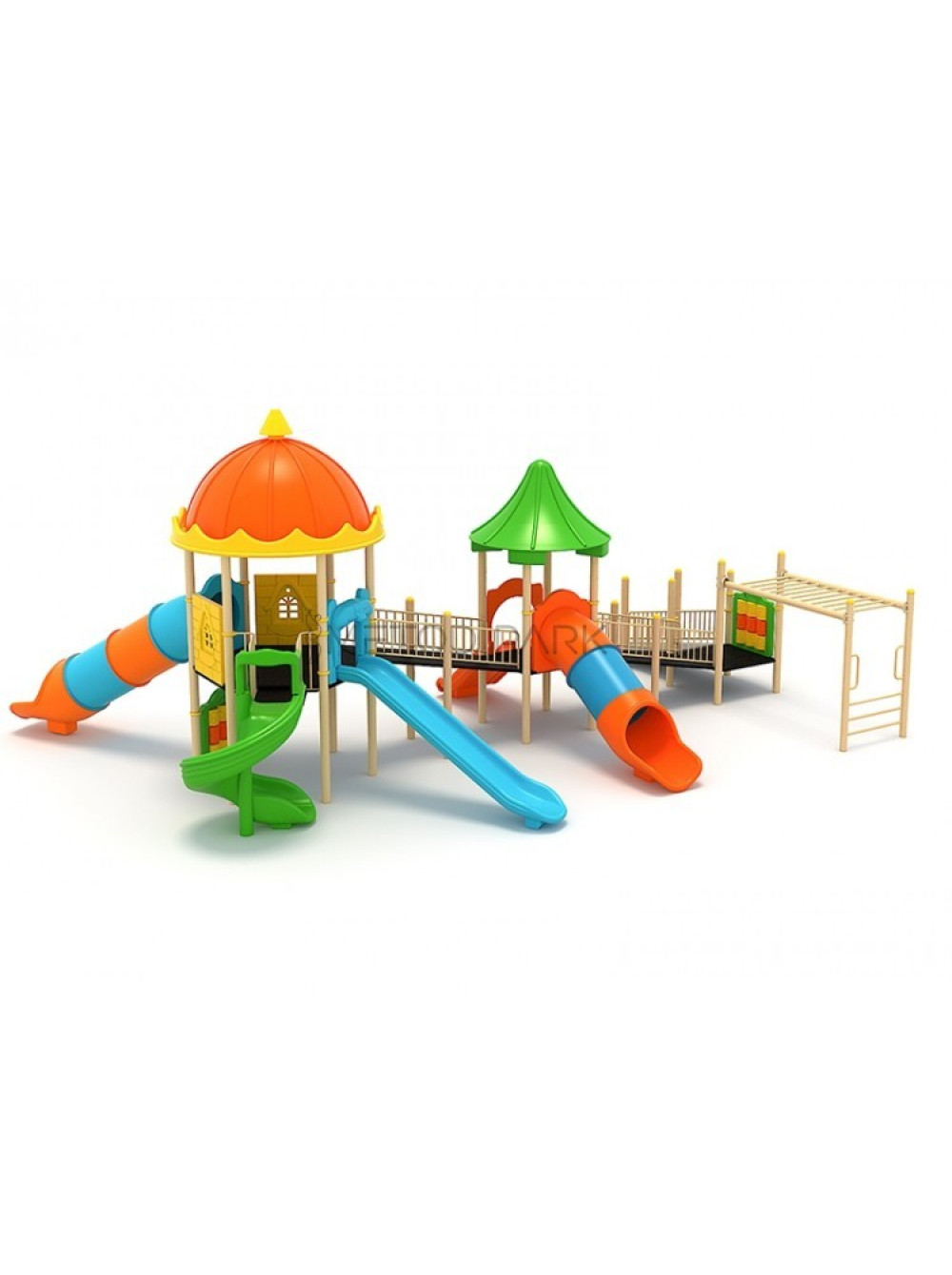 Ігровий комплекс для дітей з ОФП Казка - гідна конструкція для установки в місцях громадського користування. Дитячий майданчик має досить великі габарити, але разом з тим він практичний і багатофункціональний, укомплектований різноплановим ігровим обладнанням та рукоходом. Ідеальне рішення не тільки для ігор, але і для спортивних навантажень. Але головна її особливість в тому, що тут одночасно зможуть разом грати дітки різного віку і з різними фізичними можливостями. Завдяки наявності пандуса, до цих гірок зможуть мати доступ діти на інвалідних візках.