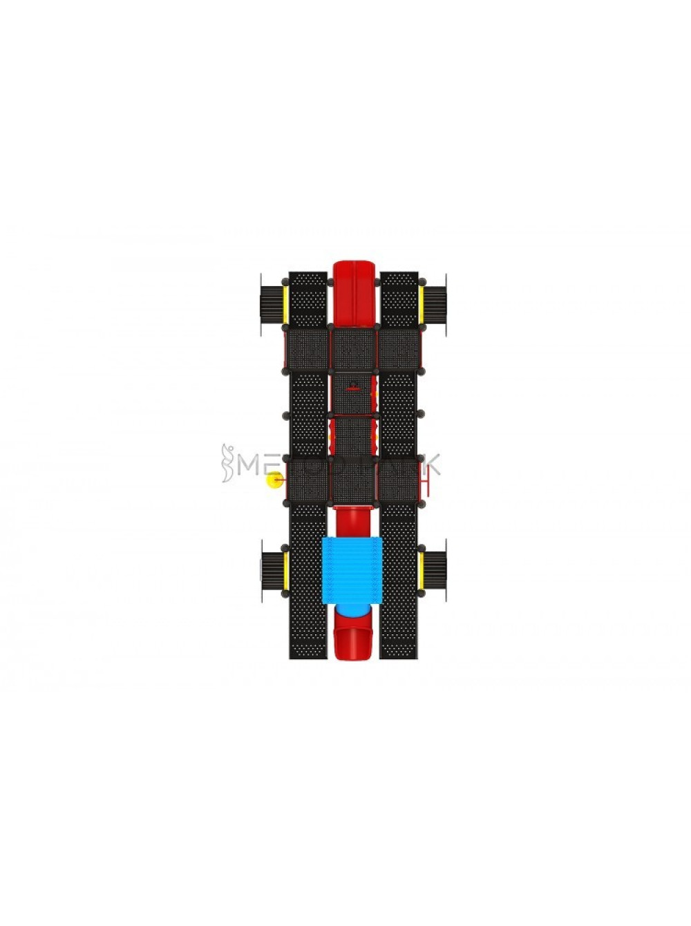 Ігровий комплекс виконаний з металу. Електростатична порошкова фарба наноситься на металеві деталі шляхом піскоструминної обробки, оцинкування, полірування ґрунтовки або катафорезу. Поліетиленові деталі виготовлені з антистатичного матеріалу, нешкідливого для здоров'я.