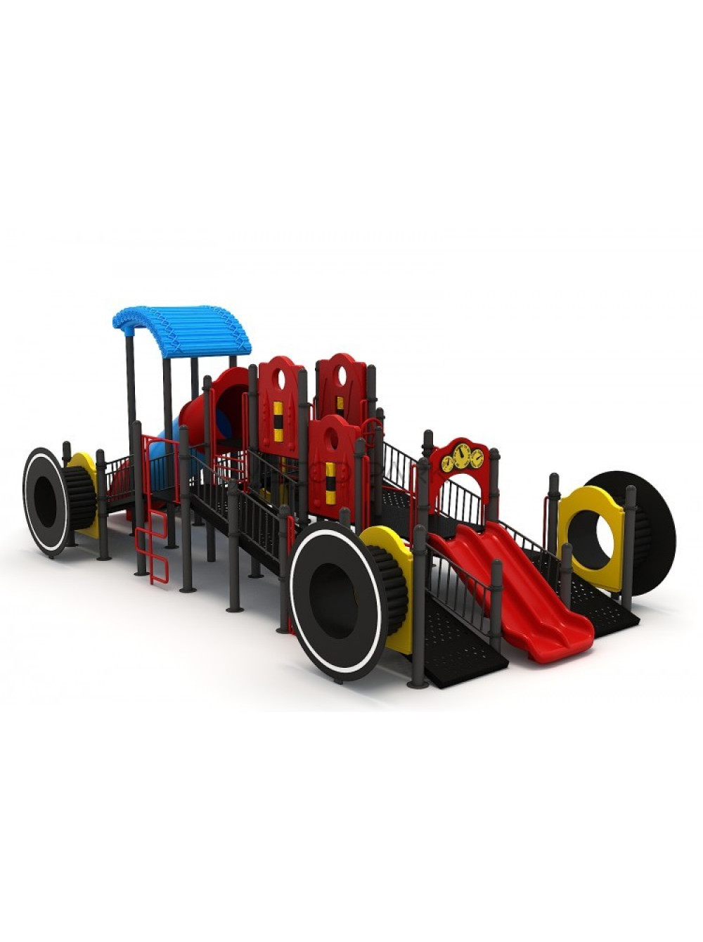 Інклюзивний комплекс Граємо разом Паровоз - конструкція, що вражає в тематичному виконанні вигляді потяга. Дитячий майданчик досить великий і багатофункціональний, укомплектований різноплановим ігровим обладнанням. Але головна його особливість в тому, що тут одночасно зможуть разом грати дітки різного віку і з різними фізичними можливостями. Завдяки наявності двох широких пандусів, до цих гірок зможуть мати доступ діти на інвалідних візках.