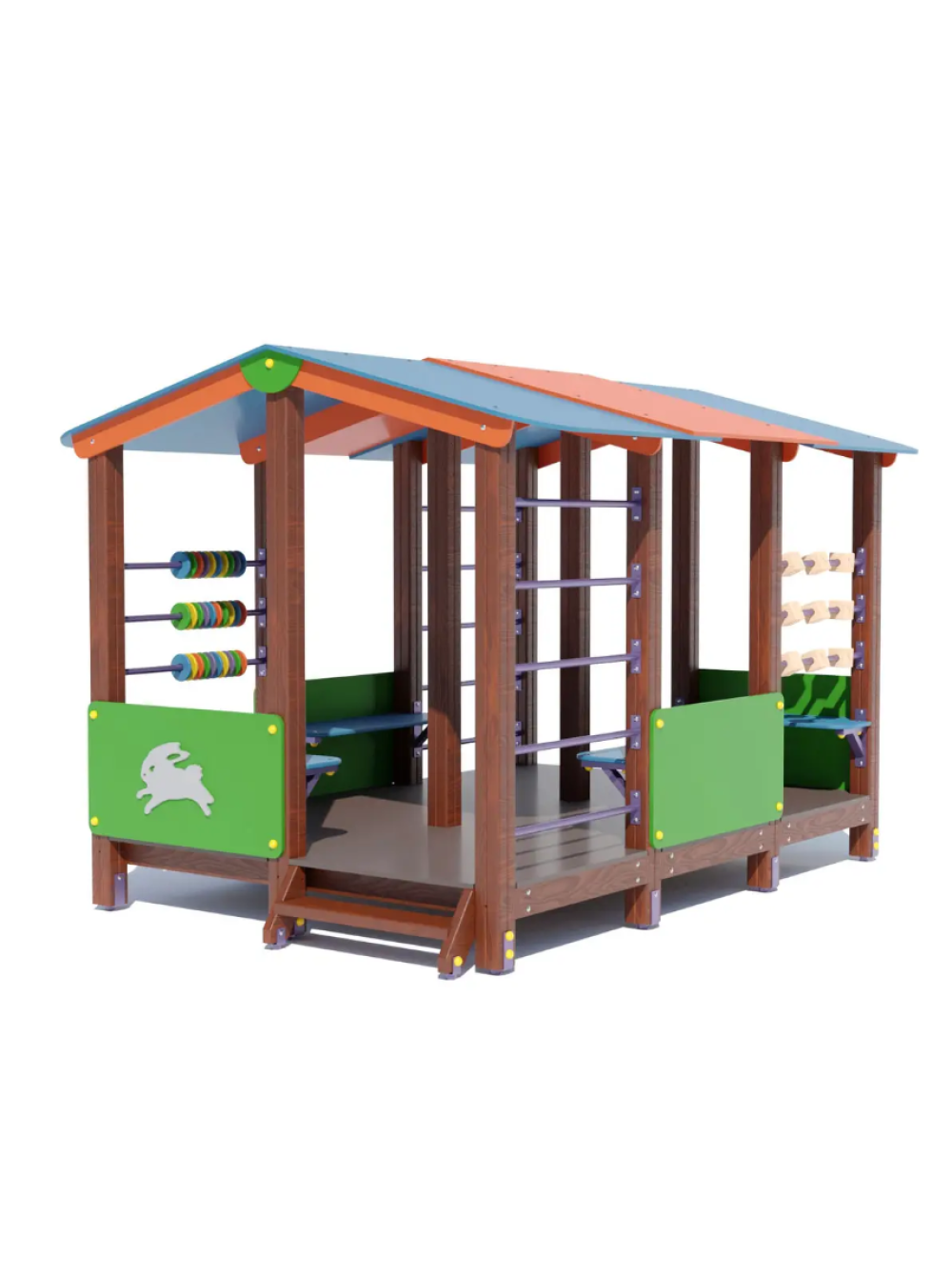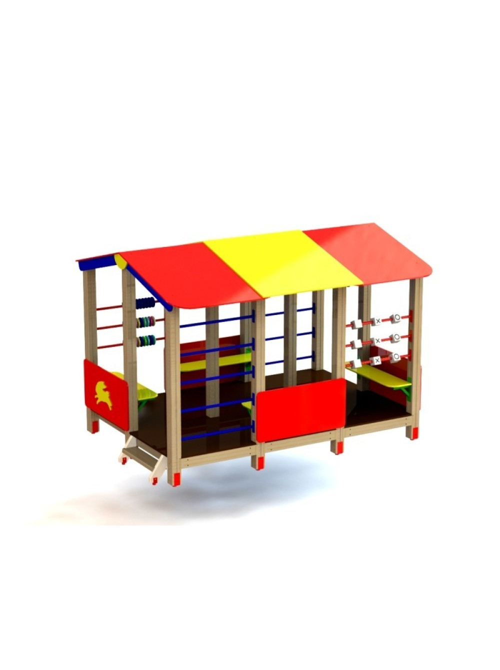 Веранда для дитячого садка Розумничка є захоплюючим ігровим елементом, який принесе користь і радість кожній дитині. Веранда для дитячого садка Умничка стане відмінним варіантом як для приватних будинків, так і для дитячих майданчиків. Веранда для дитячого садка Умничка має чотири лавочки з фанери, які розташовані уздовж стінок, для відпочинку в перервах між іграми.