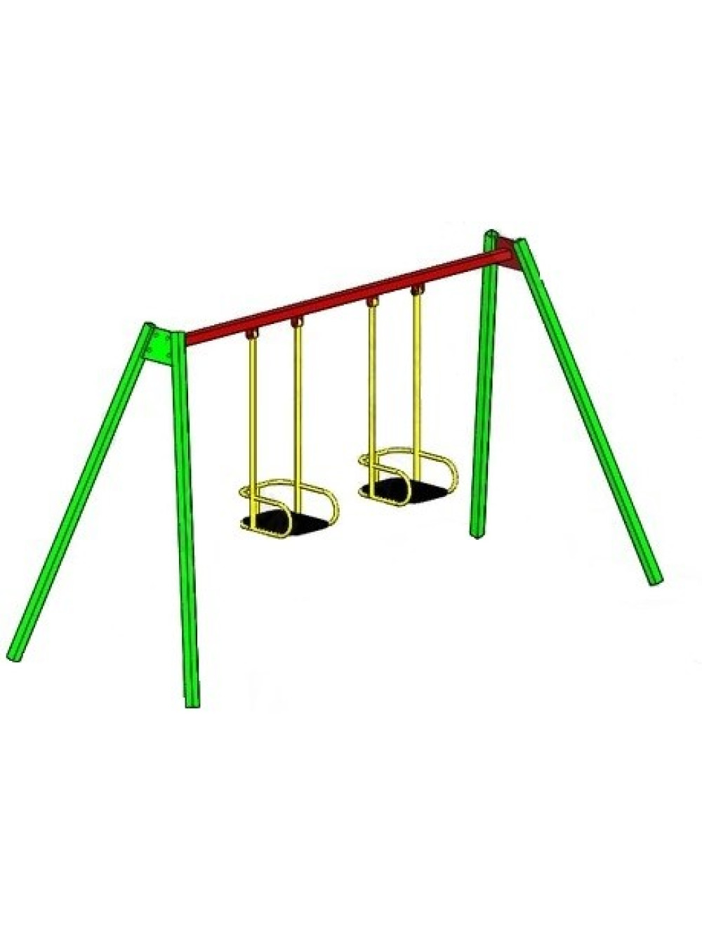 Гойдалка дитяча подвійна велика - якісна і зручна модель гойдалок на потужній металевій дугоподібній рамі для розміщення на вуличному дитячому майданчику. Дітвора з раннього дитинства обожнює гойдання на подібних тренажерах, а в цій комплектації є відразу дві гойдалки, тому гойдатися на них одночасно зможуть відразу декілька діточок.