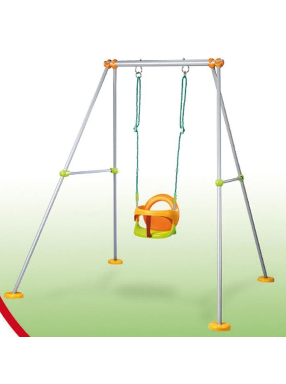 Гойдалка дитяча металева з розбірним сидінням можна використовуватися  для ігрового дозвілля дітей від одного року. Виріб має стійкий і міцний металевий каркас, тому вони придатні для установки не тільки в приміщенні, але і на вулиці, для міцності та стійкості конструкцію необхідно бетонувати.