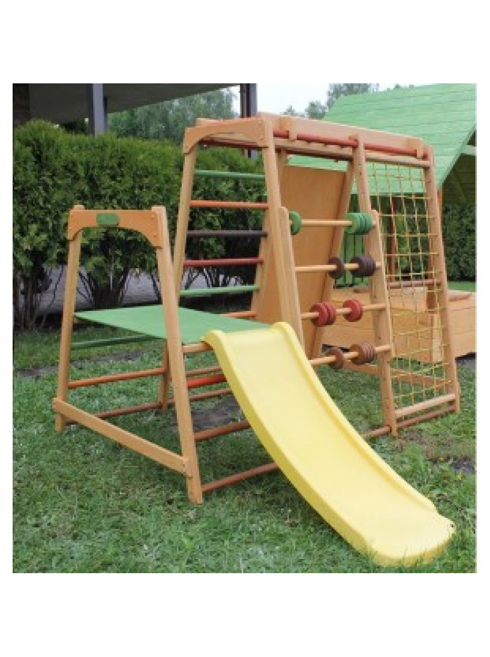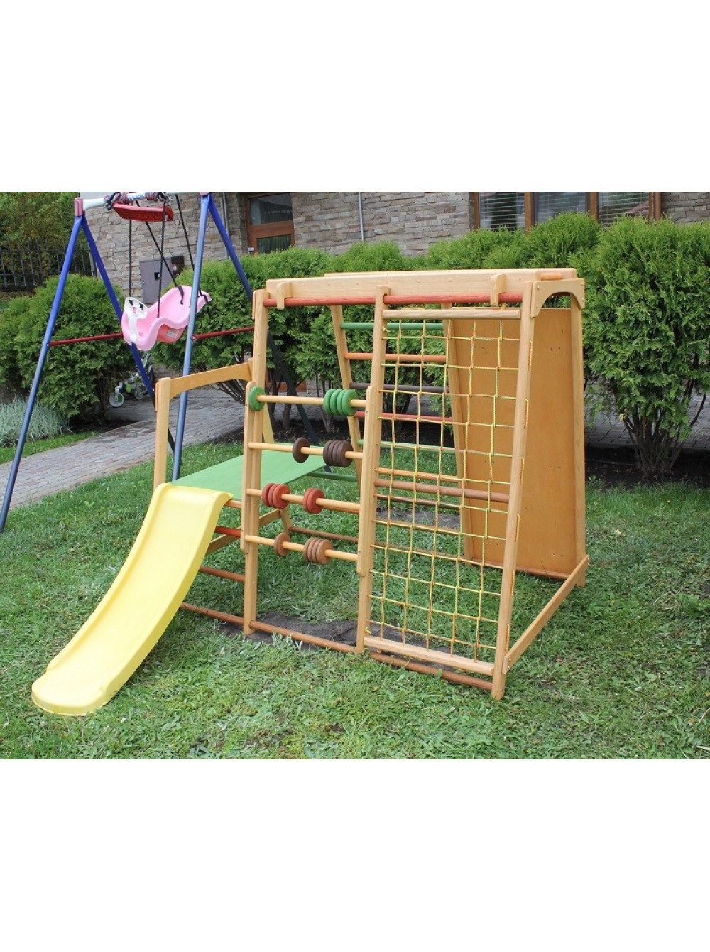 Така річ здатна зайняти Вашого малюка протягом тривалого періоду часу і завдяки наявності таких ігрових елементів, як пластикова гірка і модуль з рахунками, цілком може використовуватися і як домашній ігровий майданчик. Також, при бажанні, Ви зможете доукомплектувати комплекс навісними дерев'яними гойдалками.