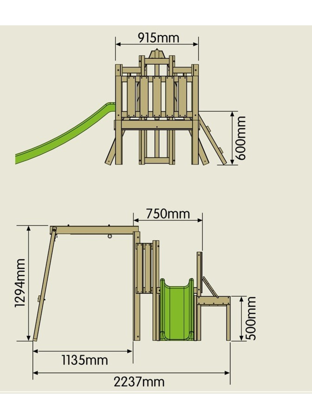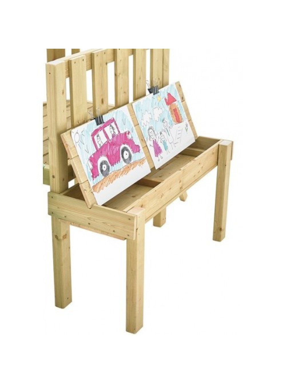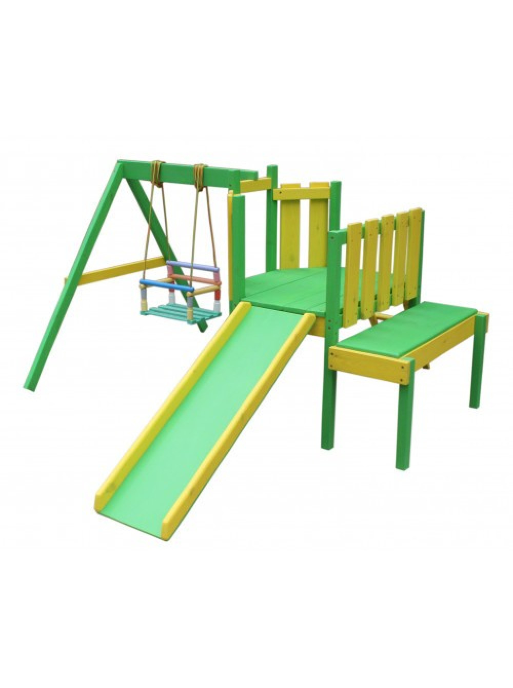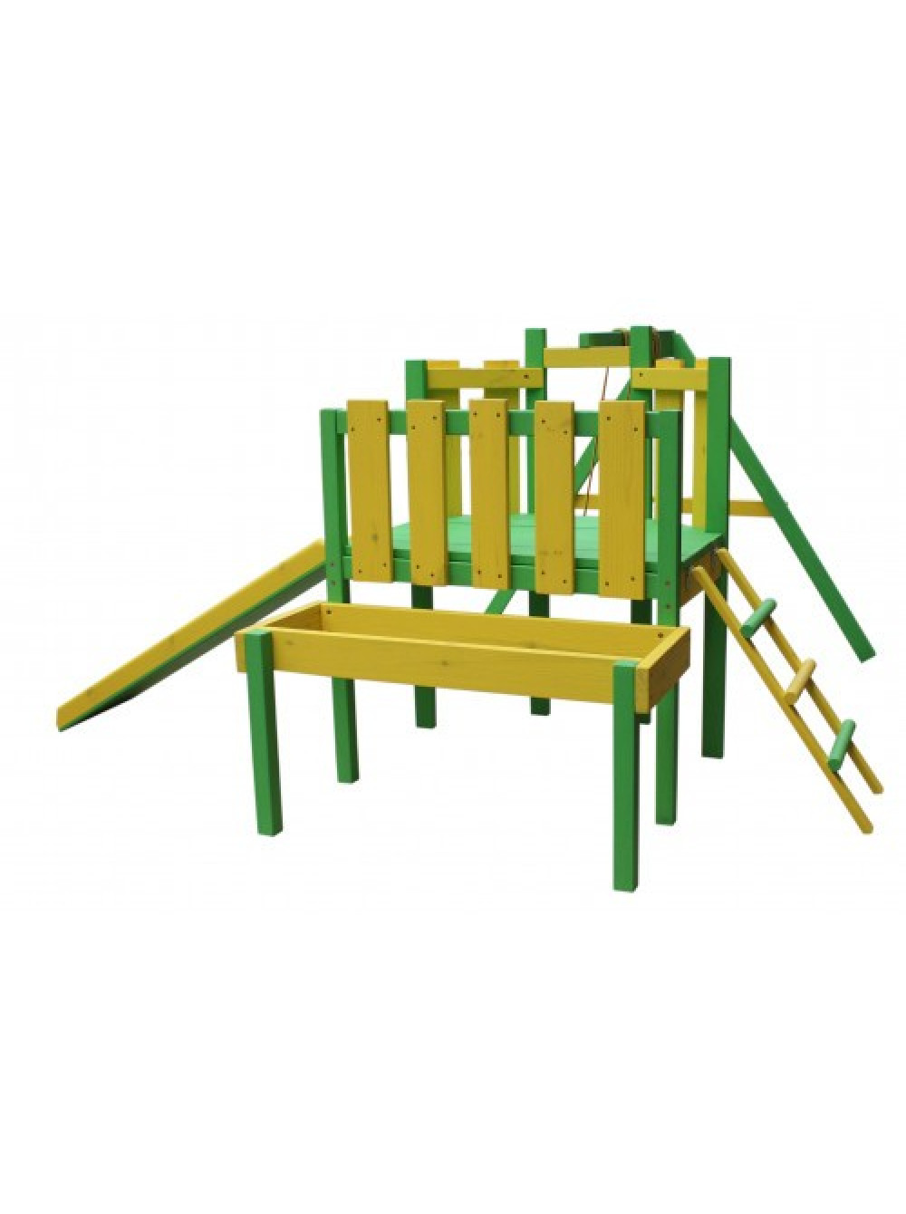 До того ж лавка в комплексі чарівна, вона легко трансформується в пісочницю або мольберт для малювання. Виріб виконано з натуральної деревини сосни та пофарбовано спеціальної гумової фарбою нешкідливою для здоров'я дітей. При бажанні можлива заміна дерев'яної гірки на пластикову (1.2 м + 640 грн). Також комплекс можна забарвити в будь-які кольори - Безкоштовно. Такий майданчик Ви зможете використовувати цілий рік - взимку в будинку, а влітку на вулиці.