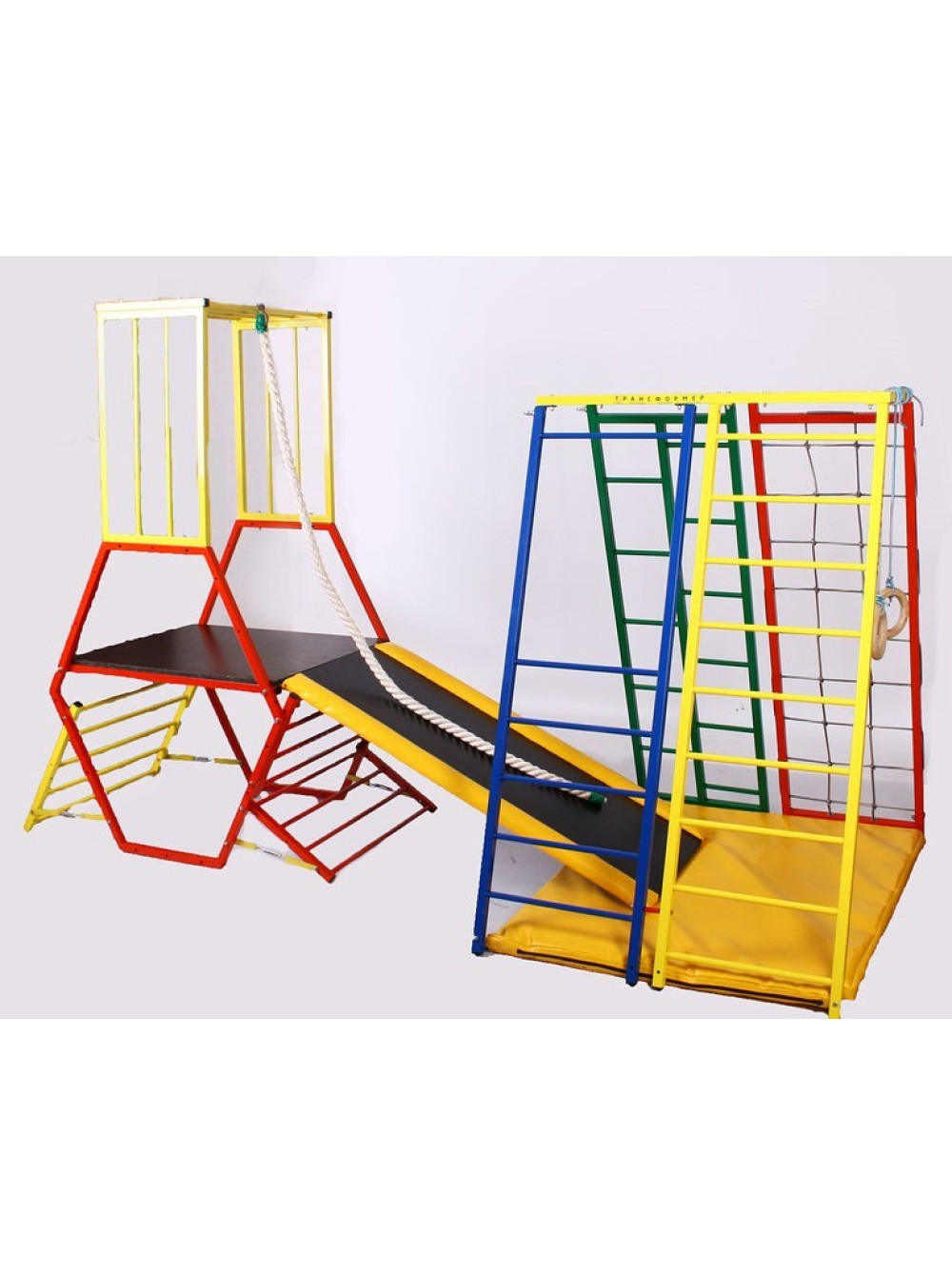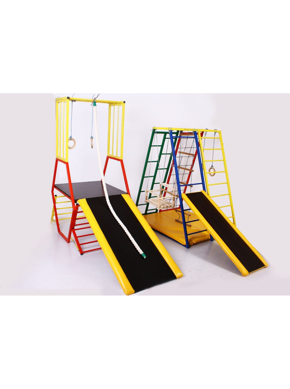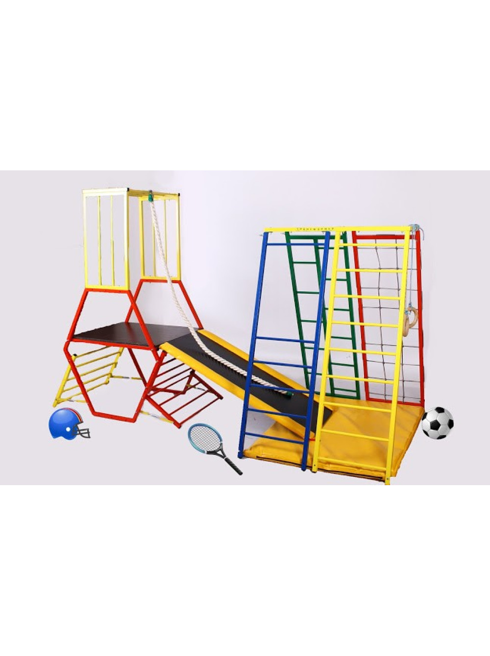 Спортивний комплекс для дітей Лабиринт-1 складається з двох частин, які можуть використовуватися як єдине ціле, так і незалежно один від одного. Краса цього майданчику в тому, що комплектувати ці позиції можна як завгодно - паралельно, "паровозом" один за одним та хоч навскоси! Як вам дозволяє фантазія і наявність вільної площі для установки Лабіринту.