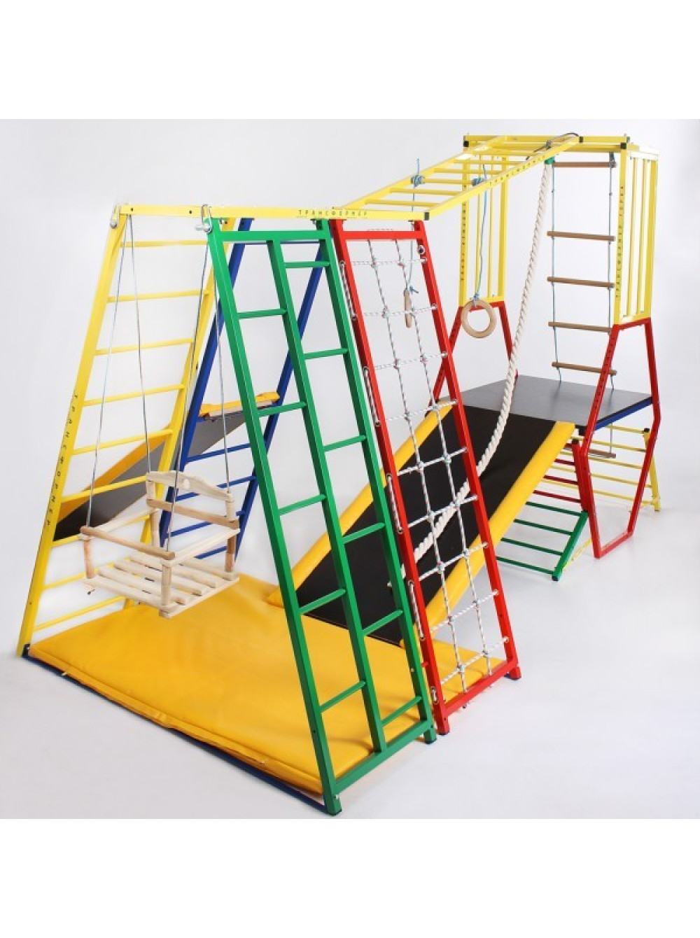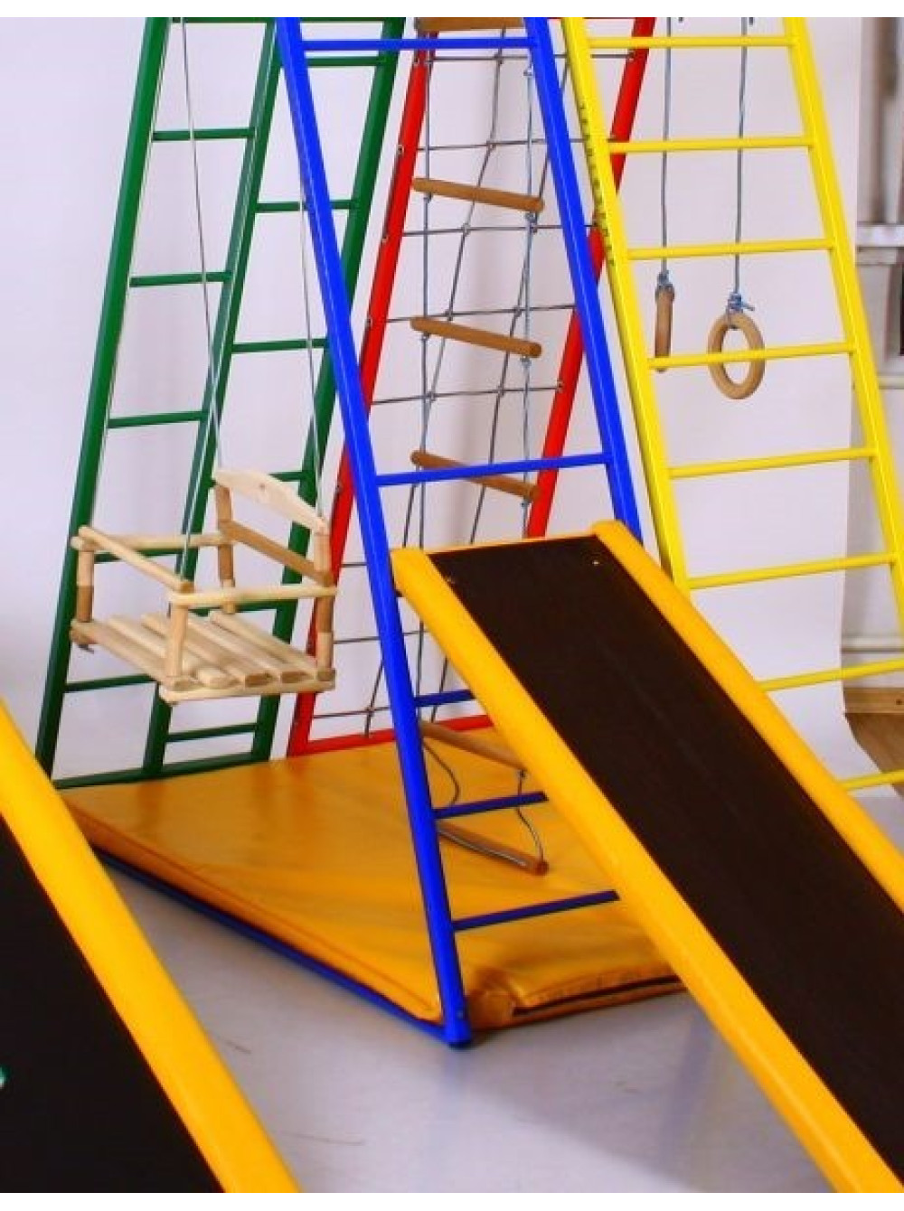 Елемент Гірка має 4 бічних незалежних різьблених регулятора, навіть якщо місцевість не рівна, то комплекс можна відрегулювати так, щоб він стояв максимально стійко і не хитався з боку в бік.