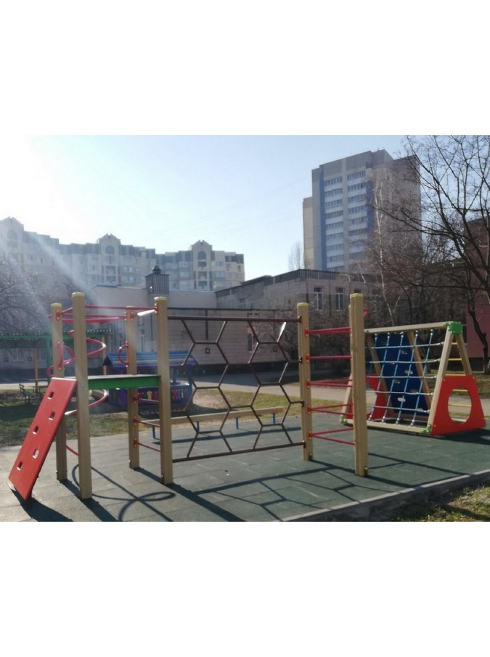 Спорткомплекс для вулиці Павучок - відмінне рішення для організації спортивного дитячого майданчика.Така модель буде цікава дітям від трьох років і до молодшого шкільного віку. Тут є все, що б весело та активно проводити дозвілля з однолітками: піратська сітка, лази, дошка для скелелазіння і драбинка.
