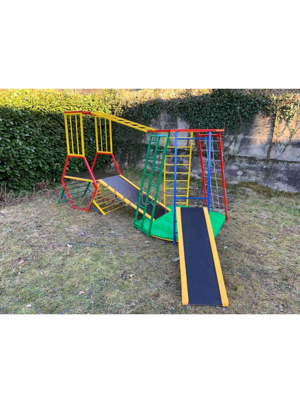 Спорткомплекс з металу Лабіринт-2 - чудовий варіант для приватного розміщення на вулиці або в будинку. Такий спортивний куточок має масу переваг. Його можна розмістити як на вулиці, так і в приміщенні, вміщує в себе багату комплектацію, як спортивних елементів, так і ігрових, тому такий комплекс цілком можна використовувати як спортивний, так і ігровий майданчик.