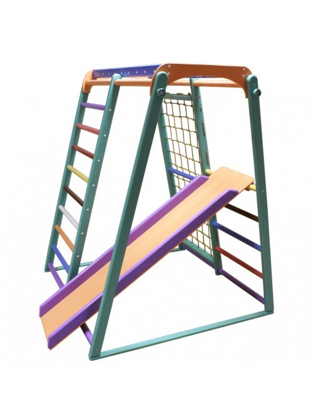 Один з найпопулярніших - Дитячий комплекс розкладний" Масяня Буратіно"Сосна/Ясен кольоровий та яскравий, стане знахідкою для квартир з невеликими габаритами. Даний комплекс можна легко скласти, прибравши його на балкон або просто поставити під стінку і розкласти коли буде потрібно. З цим завданням легко може впоратися мама малюка.