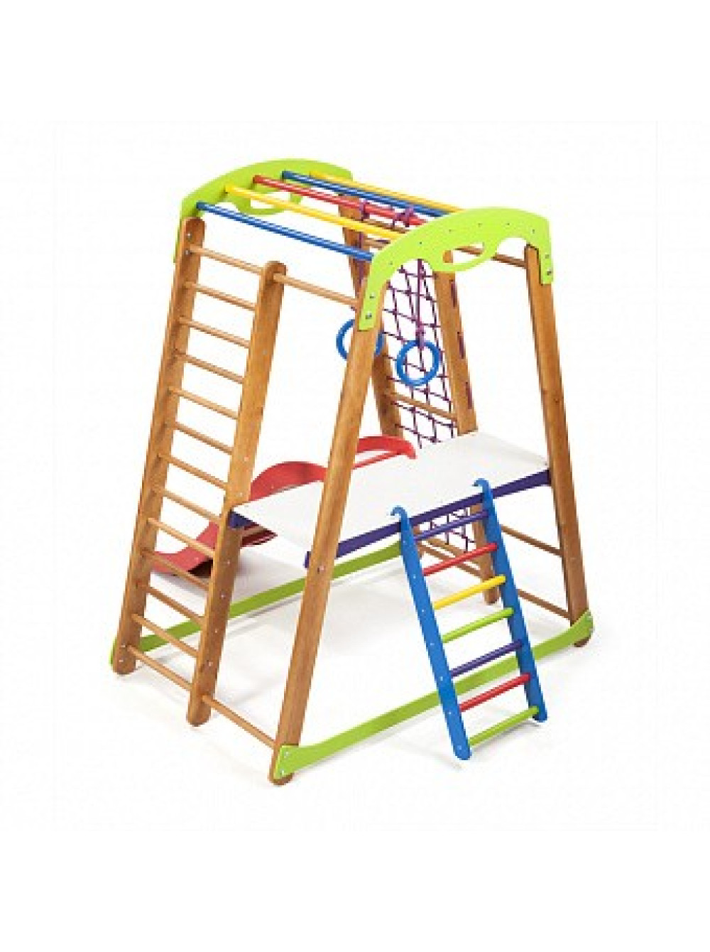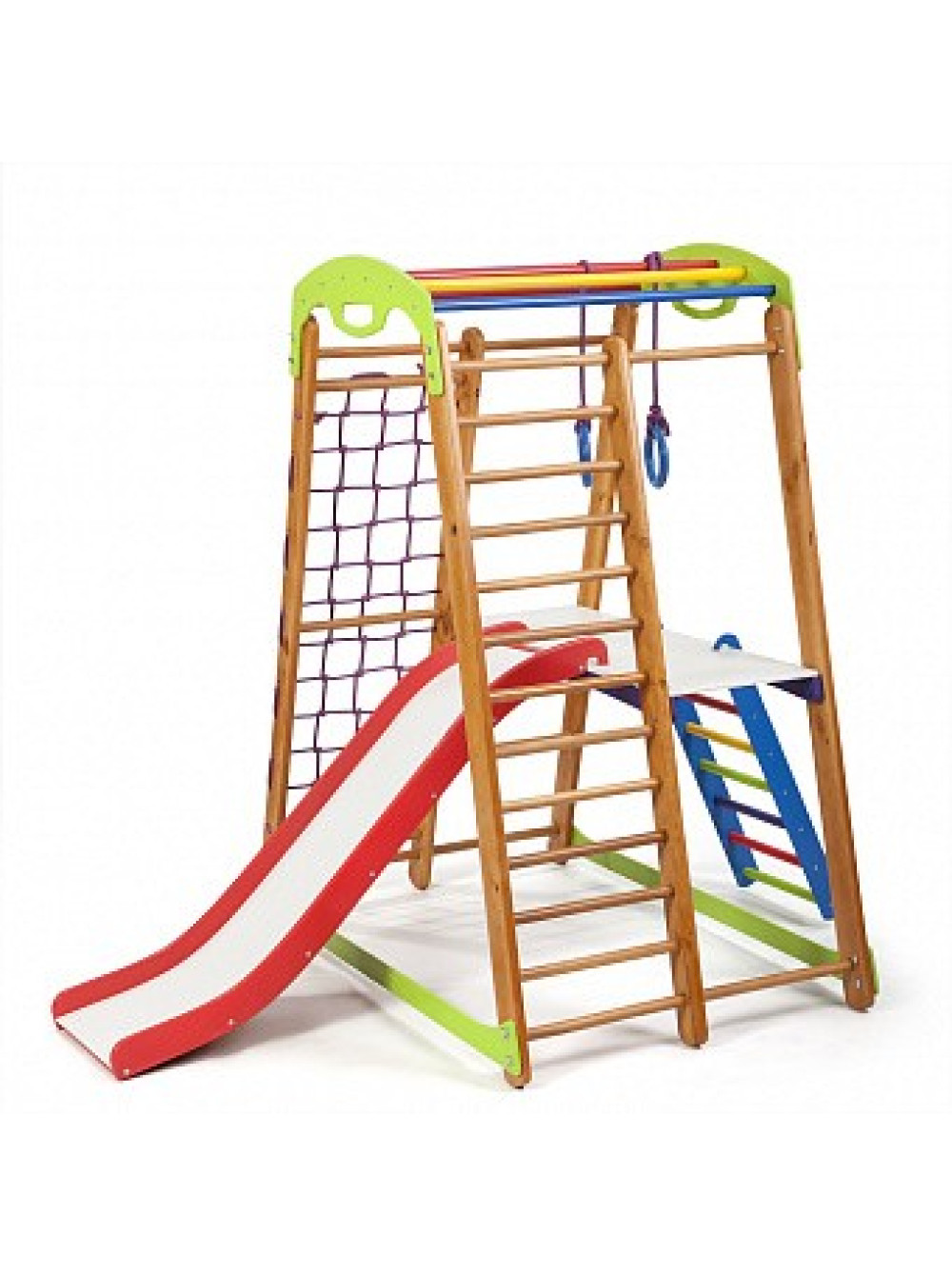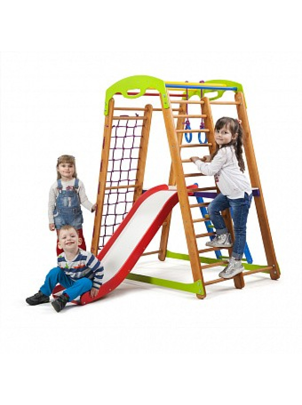 Дитячий спортивний комплекс «Малюк - 2 Plus 2» 150 виконаний з натуральних і екологічно чистих матеріалів, безпечних для здоров'я вашого малюка. Спортивний комплекс «Малюк - 2 Plus 2» відрізняється яскравими і насиченими кольорами, невисокою ціною і високою якістю. Такий спортивно-ігровий куточок буде відмінним подарунком для дітей дошкільного віку.