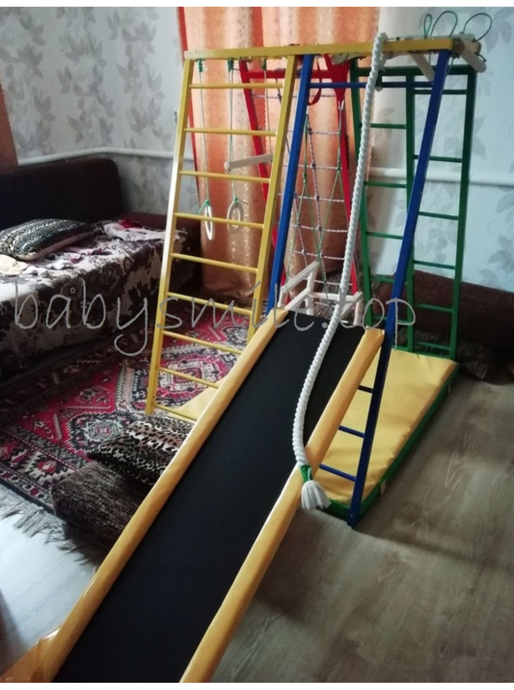 Збирається протягом п'яти хвилин, в подарунок спортивний мат 50 х 50 см під гірку і трапеція.