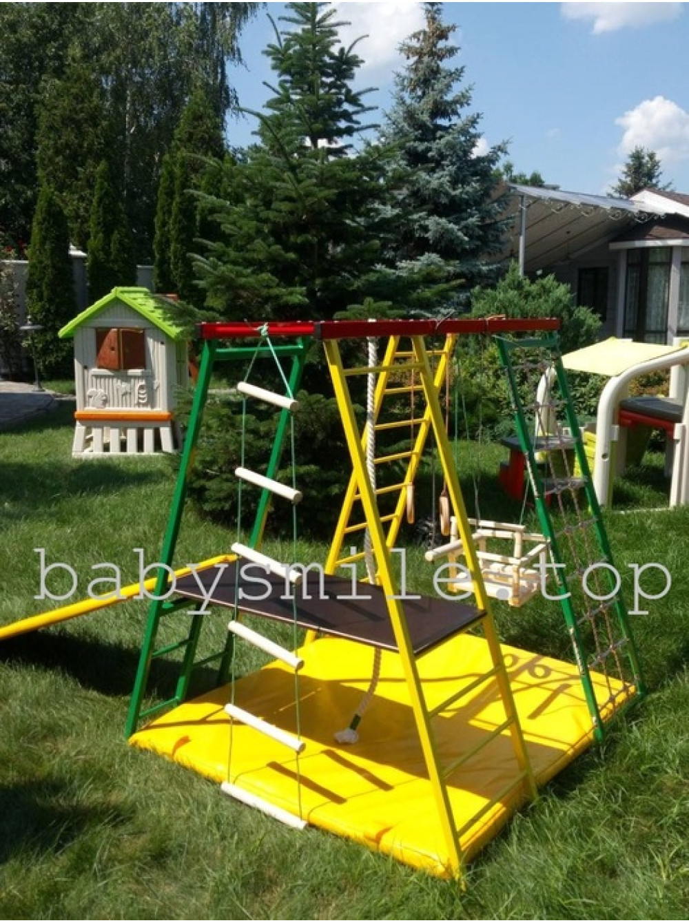 Цей комплекс доповнений дерев'яними гойдалками і м'яким матом.