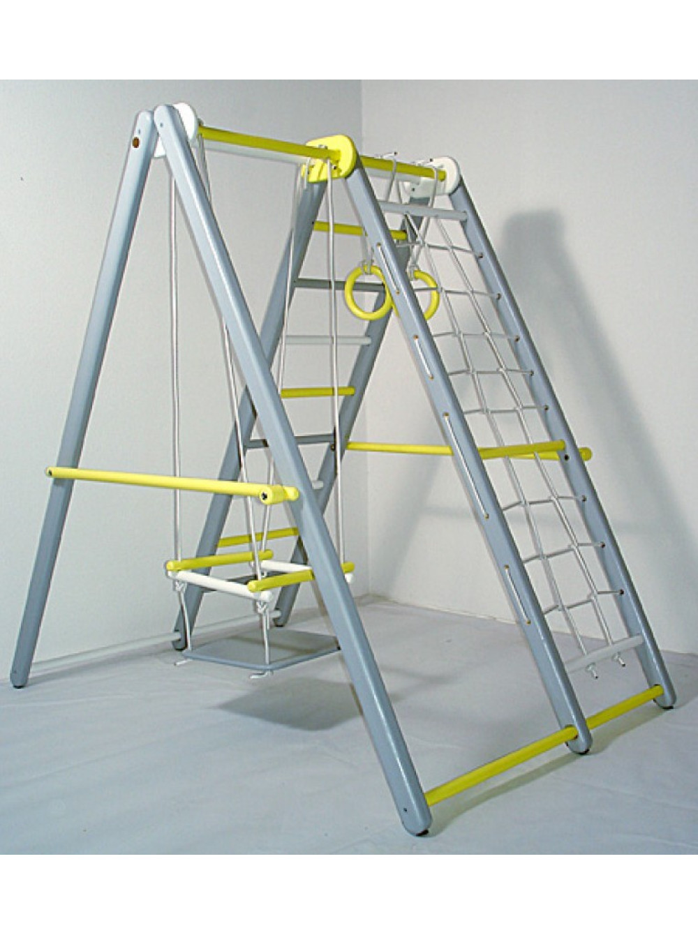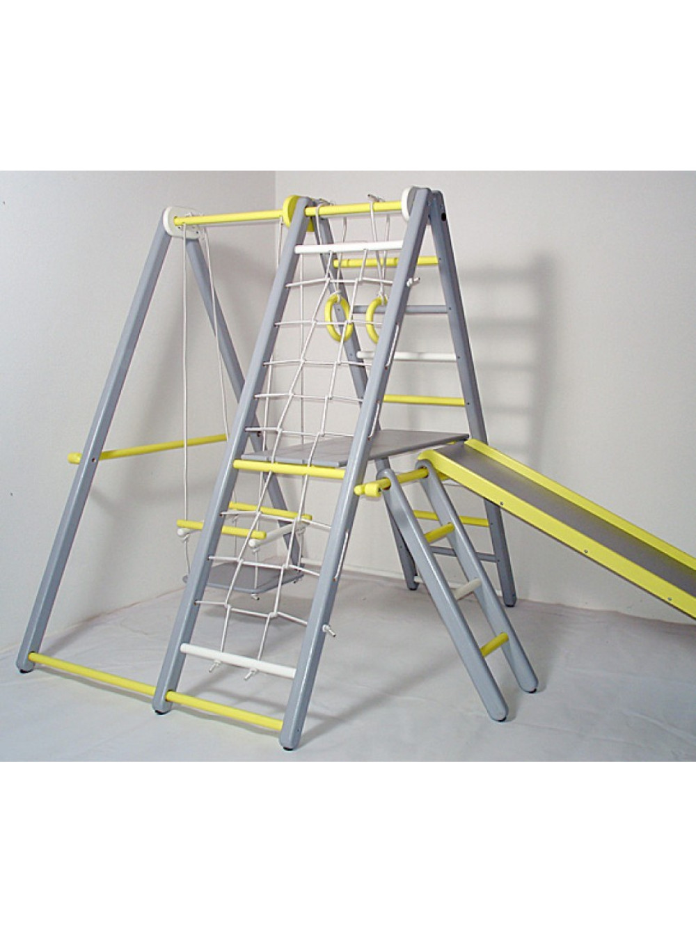 У базовий комплект ігрового комплексу розкладного Кроша входять: куточок з гойдалками, кільцями, майданчиком, драбинкою, гіркою. Цей комплекс призначається діткам у віці від 1,5 до 4-х років. Ігровий комплекс розкладний Кроша - це відмінний подарунок для активних малюків, ігри на якому допоможуть розвинути і поліпшити моторику, координацію і витривалість.