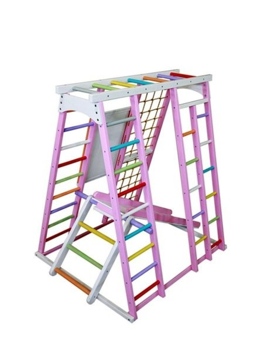 Ваш малюк зможе активно проводити час, лазячи по піратській сітці і шведській стінці, а також віджиматися, перебираючи руками перекладини рукохода. А коли йому набридне активне проведення часу, він зможе розвивати свої творчі фантазії, малюючи крейдою на мольберті.