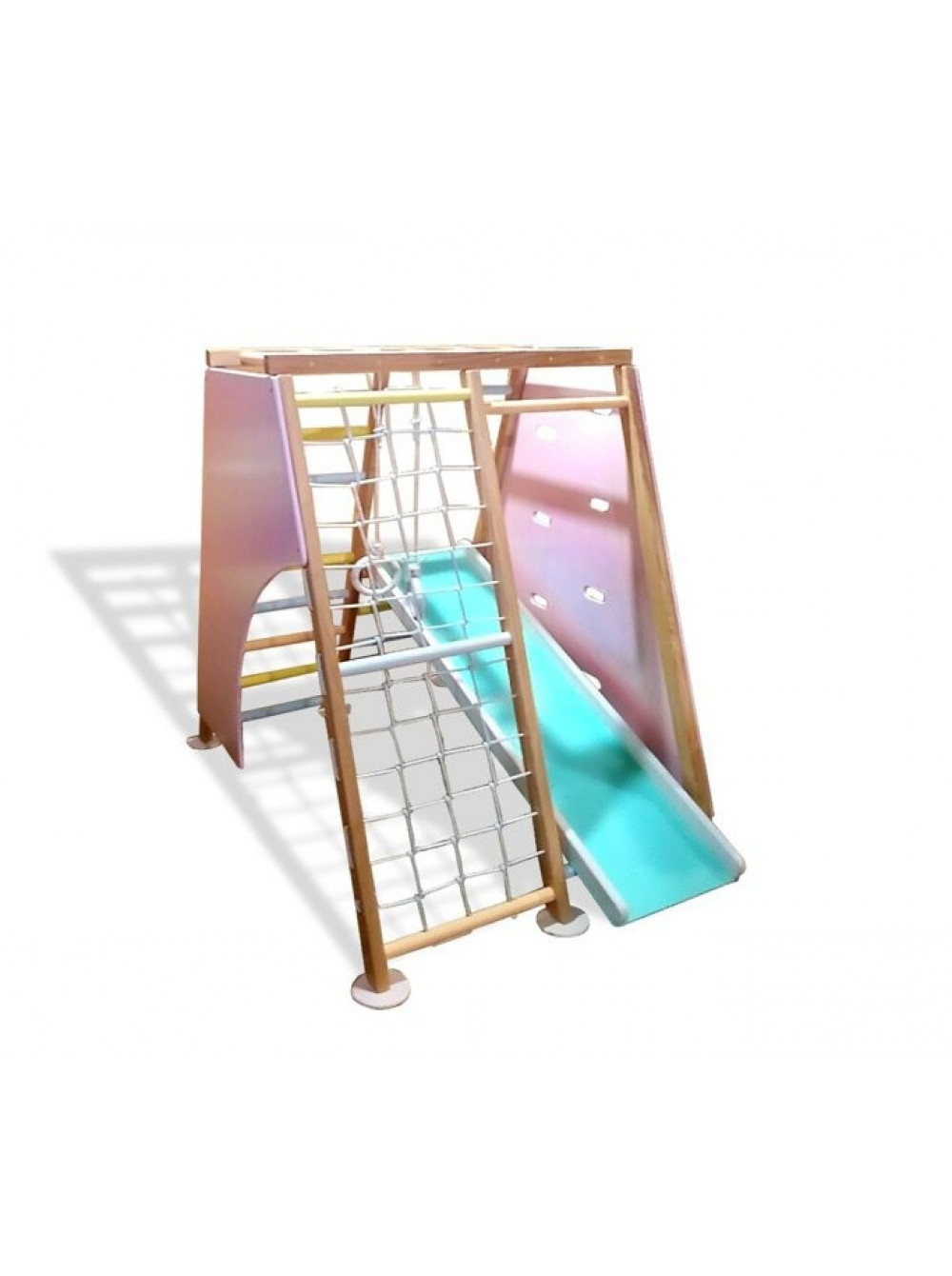 Комплекс раннього розвитку з дошкою для скелелазіння - відмінна ідея для оснащення спортивної зони в кімнаті малюка. На відміну від інших дитячих комплексів ця модель доповнена скалодромом, який виконує функції тренажера для скелелазіння. Виконаний з листа вологостійкої фанери. Це захоплювальне доповнення робить комплекс цікавішим і цікавішим.
