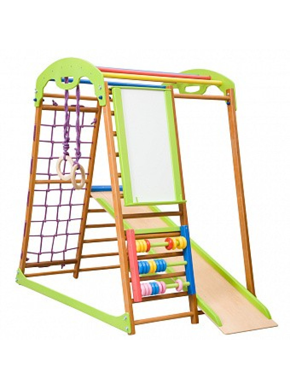 Спортивно-ігровий комплекс для будинку BabyWood Plus 130 - це відмінне місце для ігор в будинку, де дитина зможе вправлятися розвиваючи м'язи, дрібну моторику і координацію рухів. Крім цього, якщо малюкові набридне активно гратися, він зможе зайнятися малюванням або вивчати арифметику. Спортивно-ігровий комплекс BabyWood Plus неодмінно сподобається дітям дошкільного віку, які люблять веселощі й активні ігри.