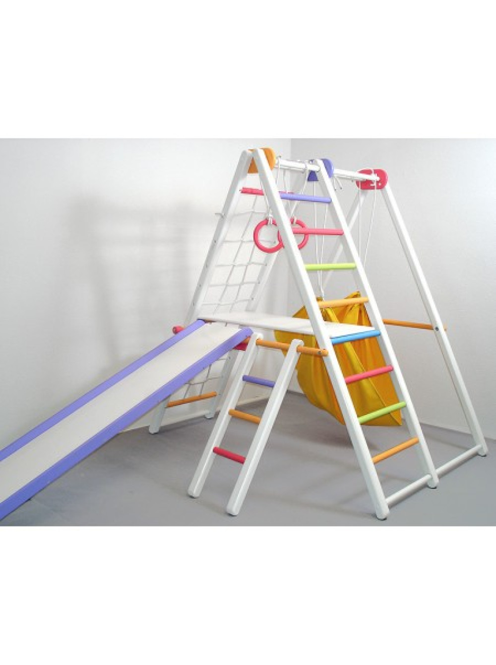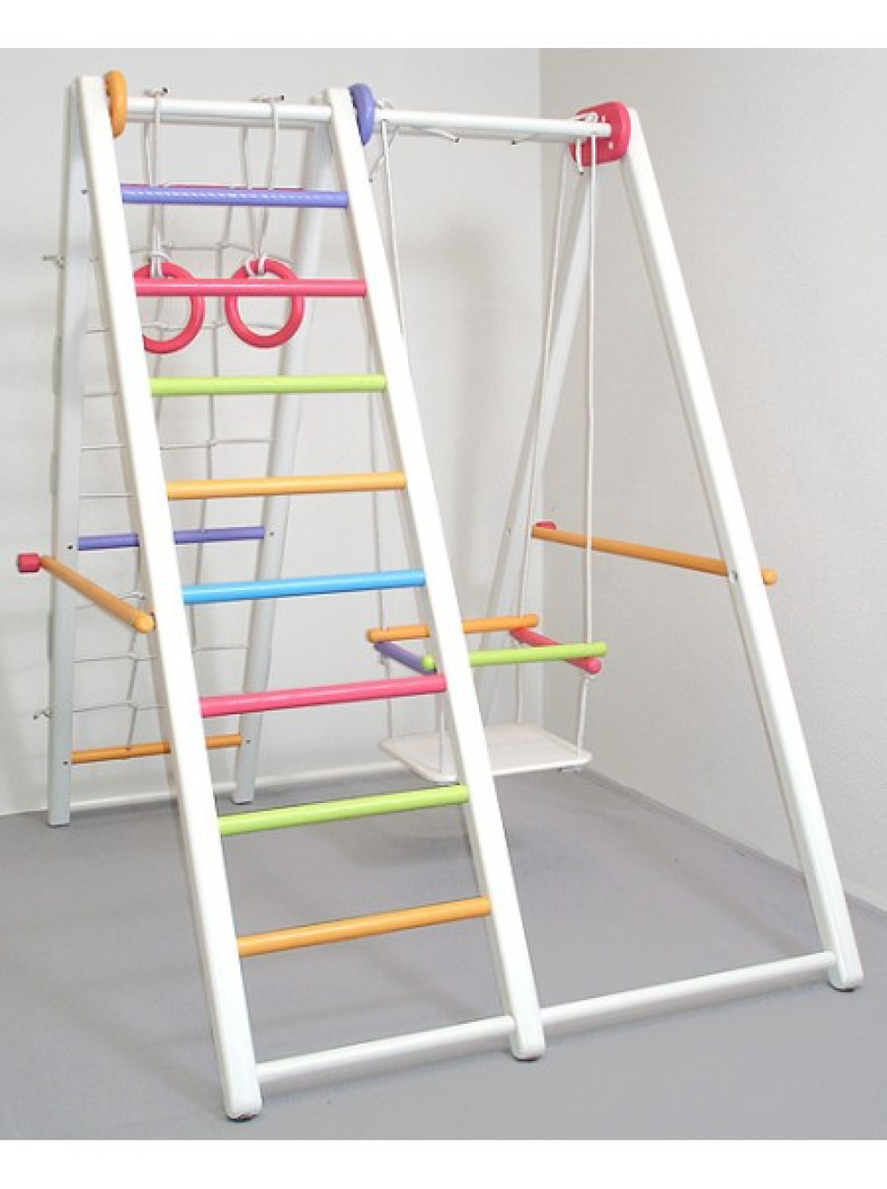 Новинка нашого магазину, виконаний в ошатному білому кольорі з різнокольоровими перекладинами. Море світла, позитиву і відмінного настрою
